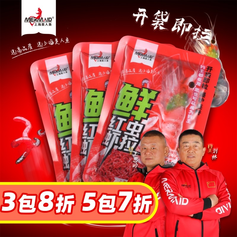 美人鱼生鲜饵鲜红虫虾拉成品饵料鲫鱼鲤鱼饵鲜虾饵黑坑饵料拉饵