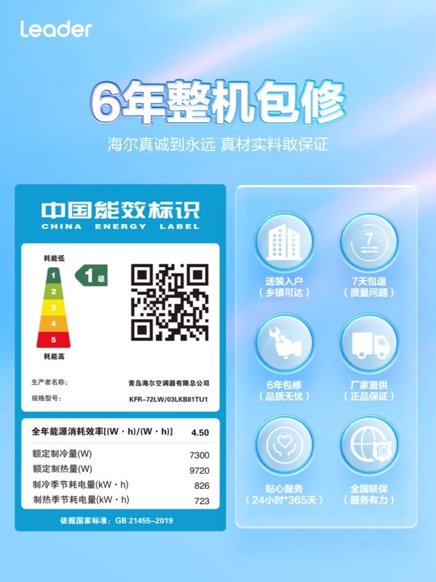 Leader/统帅 KFR-72LW/03LKB81TU1海尔空调一级客厅家用变频柜机