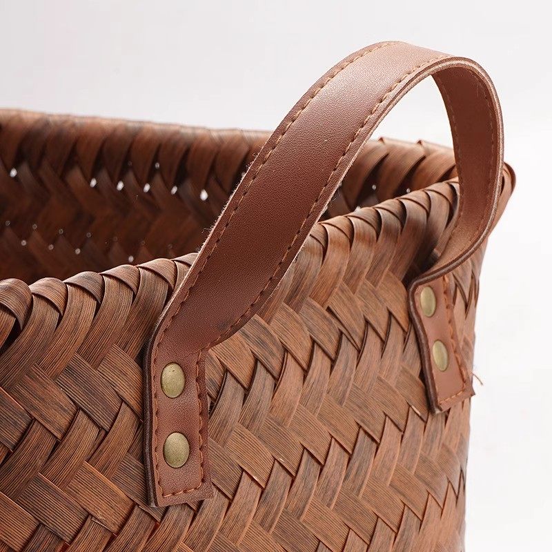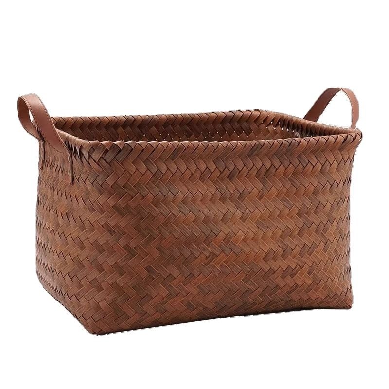 可水洗!复古高级仿藤编收纳筐零食玩具脏衣篓杂物储物框野餐篮子