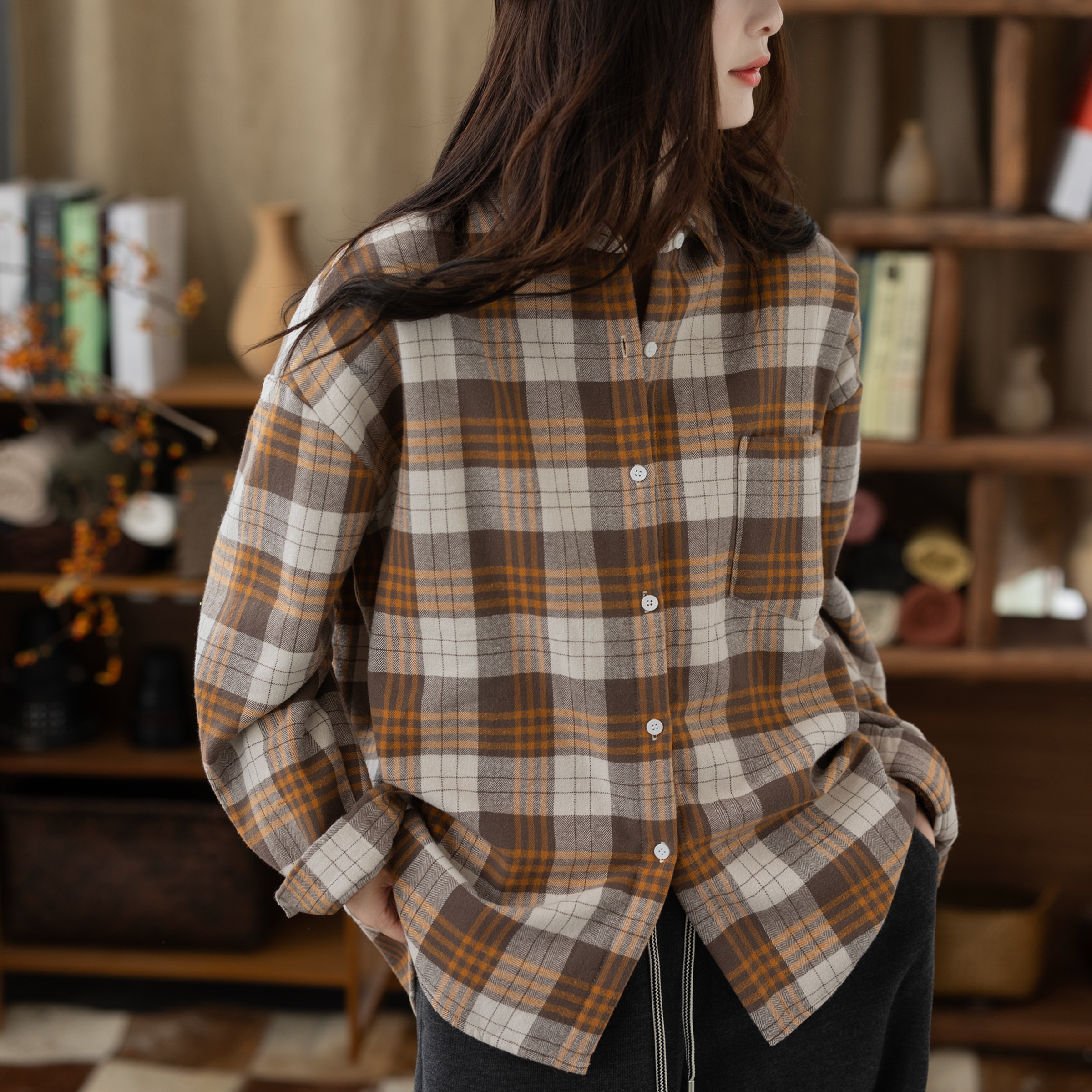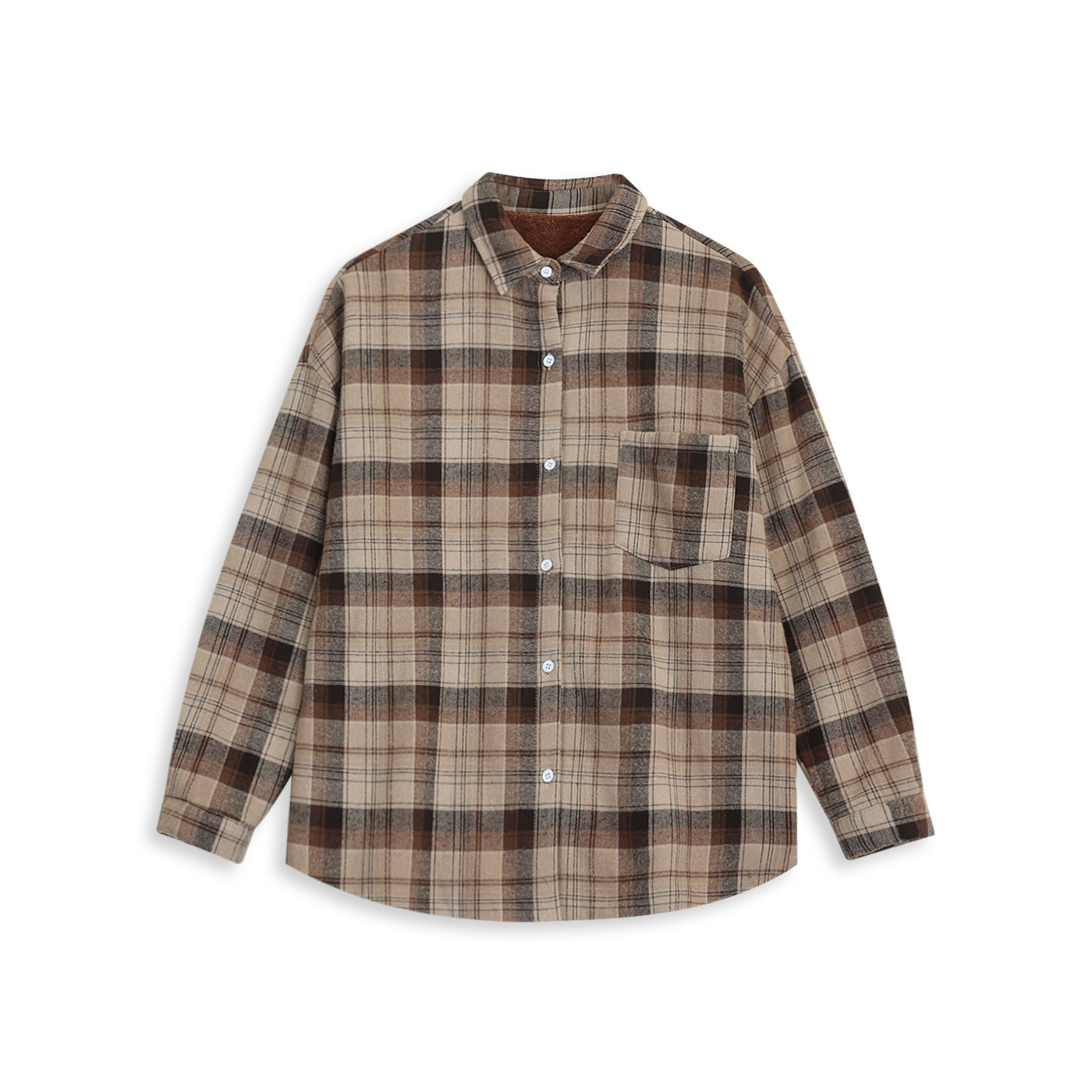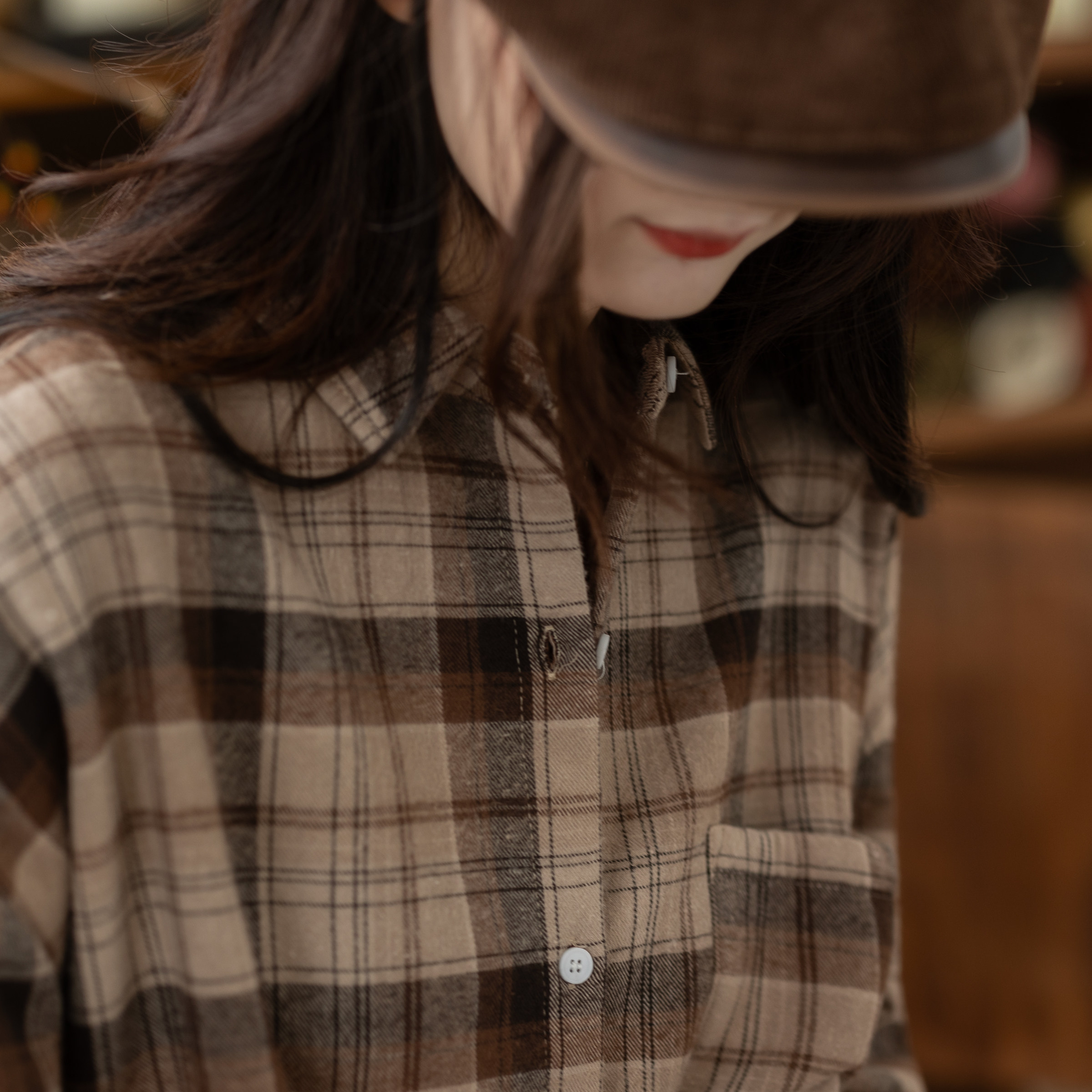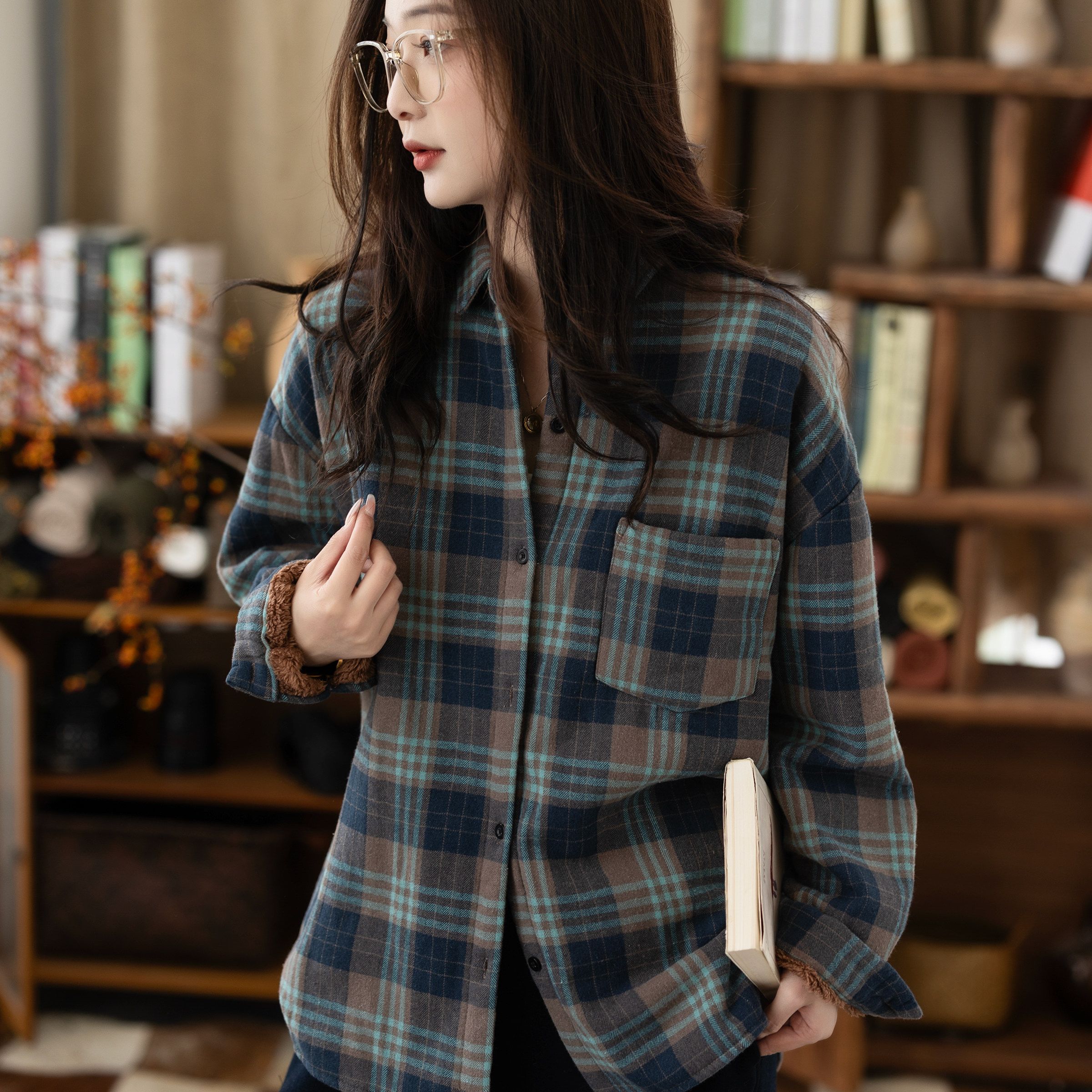 2025秋冬新款加绒格子衬衫女洋气百搭复古时髦气质女装加厚衬衣