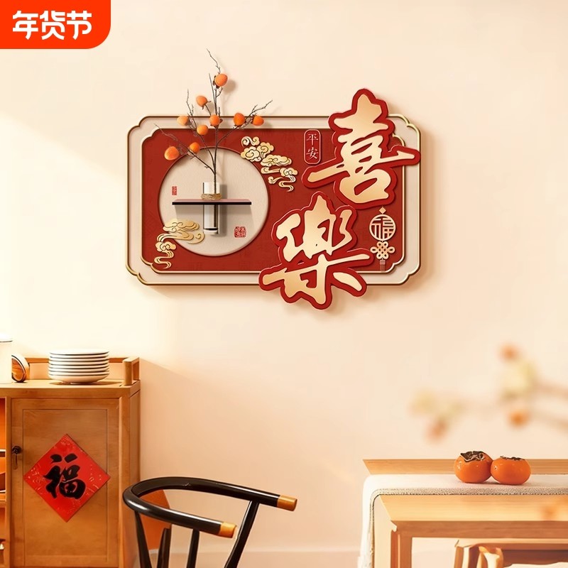 新中式餐厅装饰画红色喜庆壁画中国风新年平安喜乐装饰画水培绿植