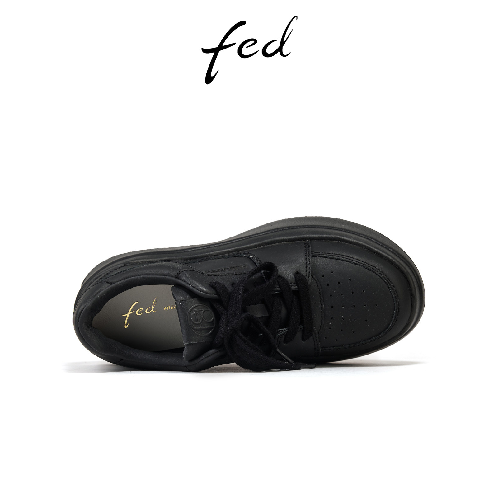 fed松糕厚底鞋秋季新款女鞋真皮休闲鞋黑色增高鞋女款S0903-YA863