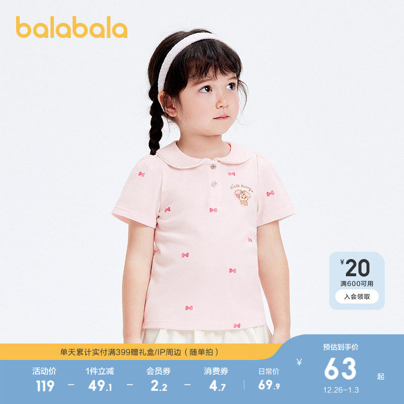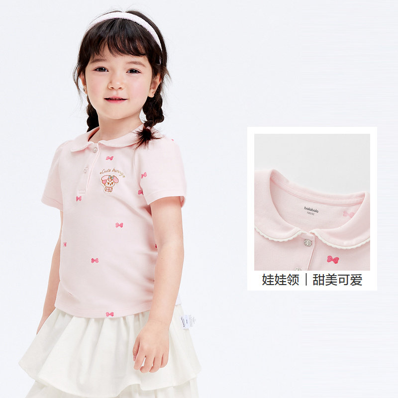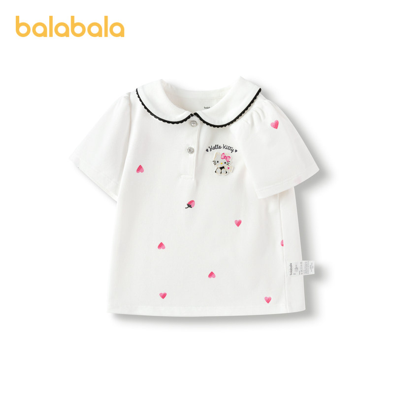 【hellokittyIP】巴拉巴拉童装儿童短袖t恤女童春夏装翻领上衣萌