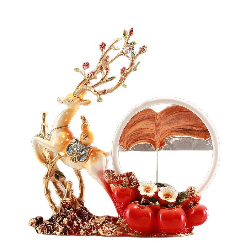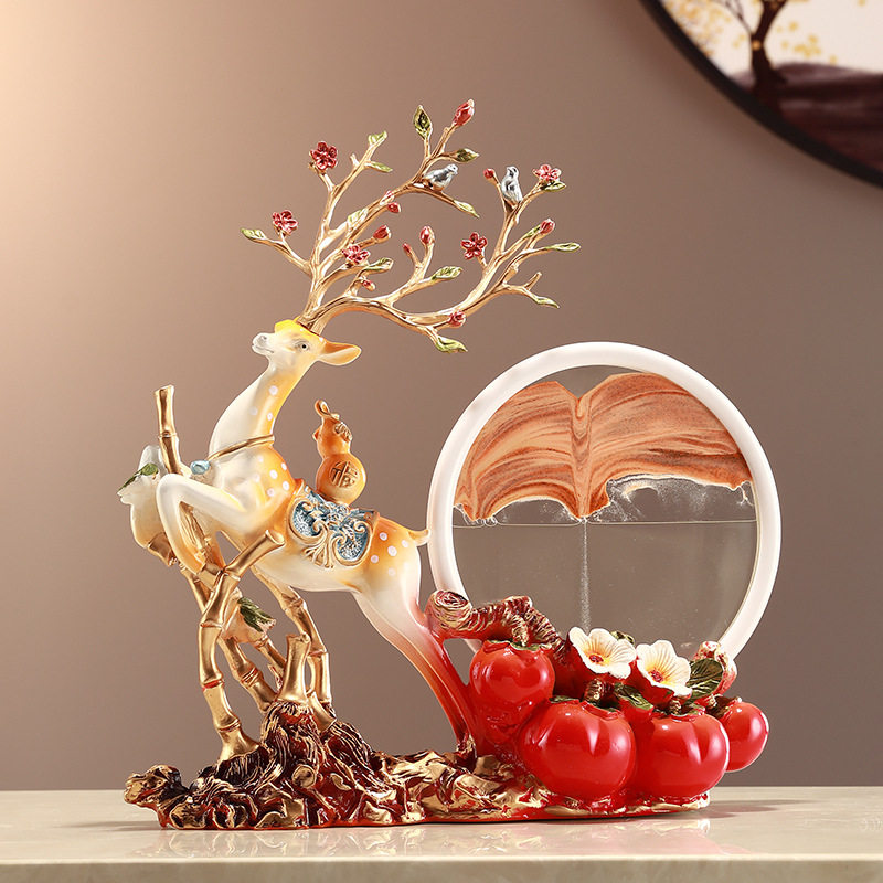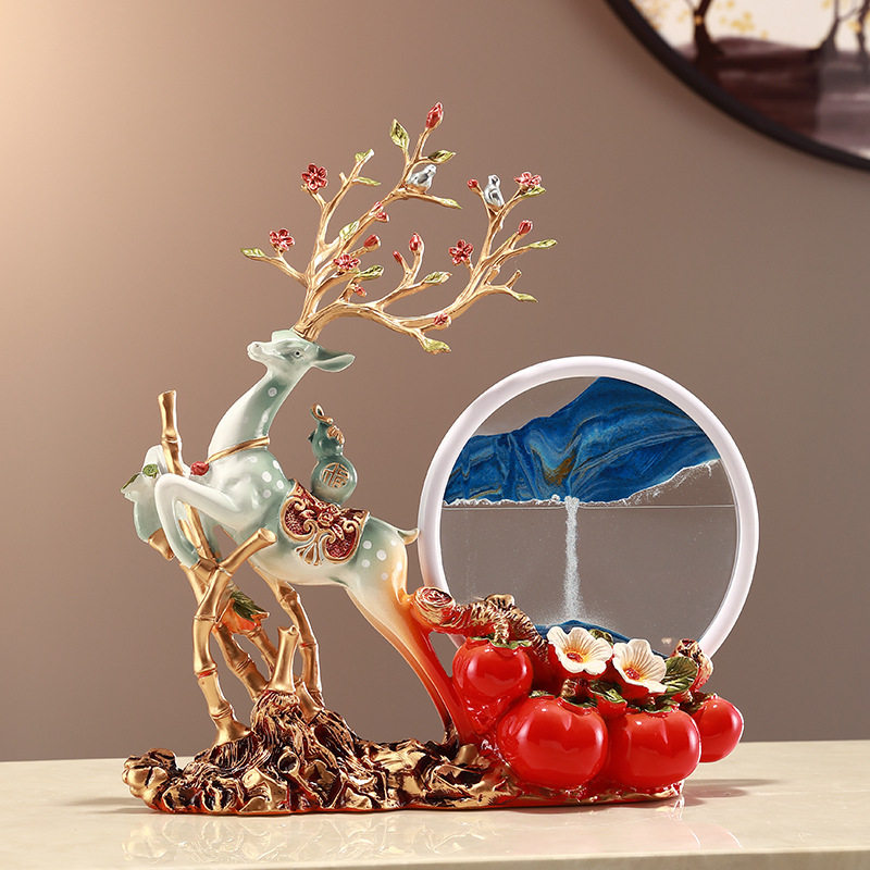 酒柜画摆件.创意鹿电视柜沙漏事事如意装饰品流沙玄关柿子家居客