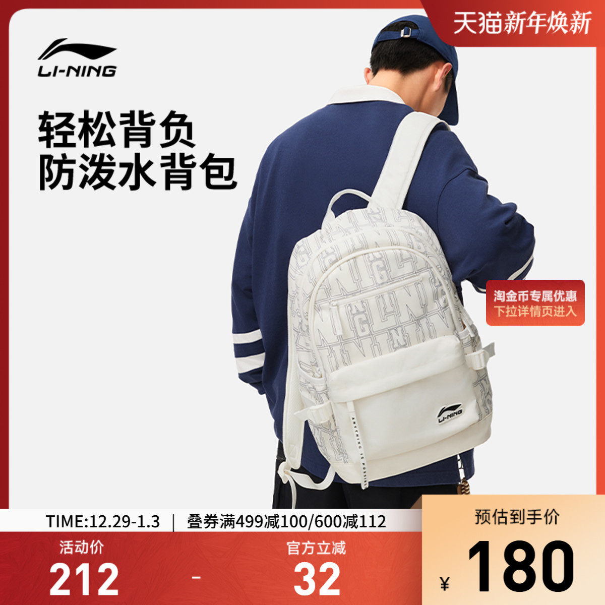 李宁双肩包男包女包新款运动生活系列背包学生书包户外出行运动包