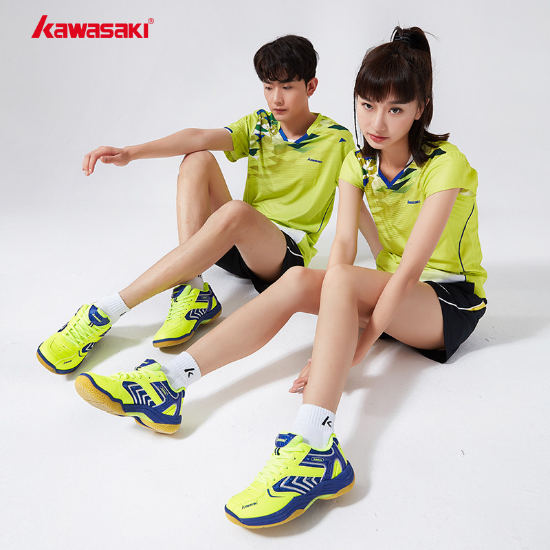 kawasaki川崎新款专业羽毛球服男女情侣运动短袖T恤运动V领速干