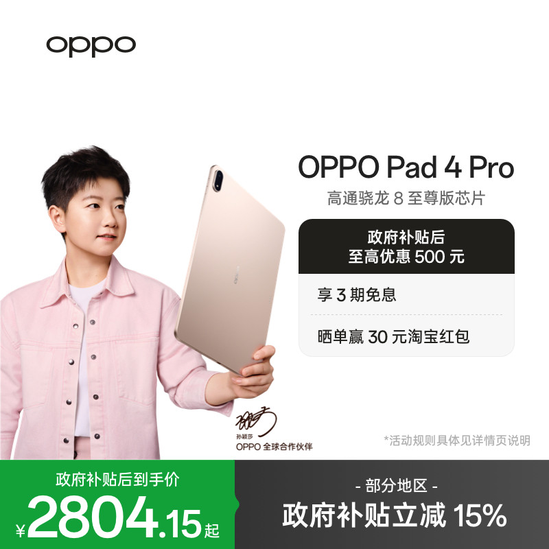 【政府补贴平板】OPPO Pad 4 Pro 孙颖莎同款大屏3.4K 超清原彩屏高通骁龙 8 至尊版芯片新款oppo平板电脑