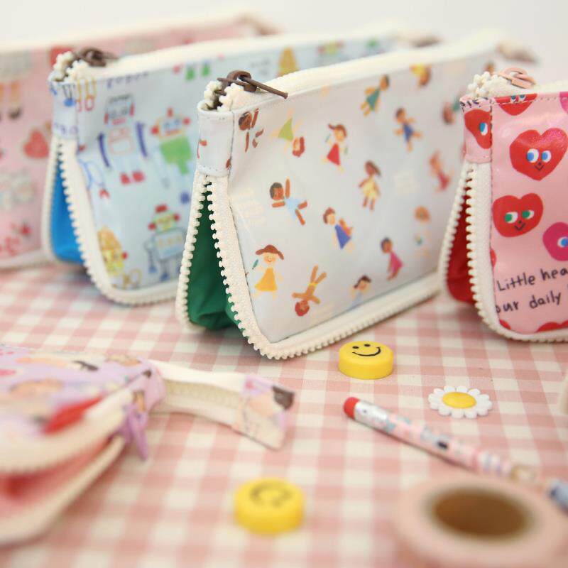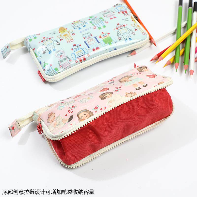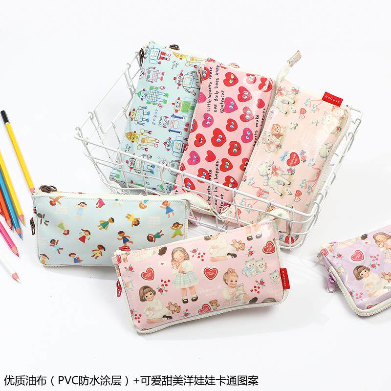 韩国afrocat可爱甜美洋娃娃卡通拉炼 炼 ??ins风防水性笔袋大容量