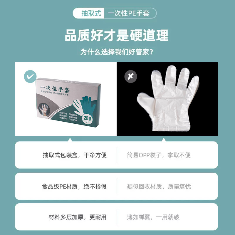 一次性手套pe食品级餐饮专用加厚塑料薄膜商用厨房家用盒装抽取式