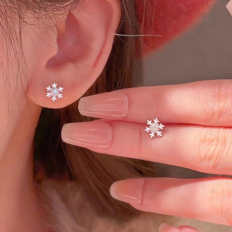 999足银雪花耳钉女士耳饰精致2025新款爆款高级感养耳洞银饰耳环