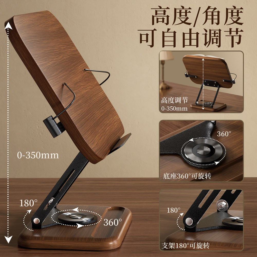 木质阅读架可旋转升降学习多功能看书支架儿童绘本桌面读书实木