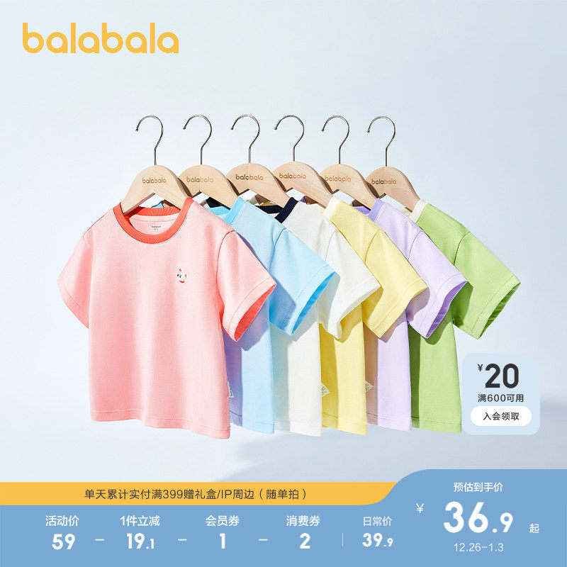 巴拉巴拉童装儿童T恤短袖2025春夏装男童纯棉女童上衣T恤撞色潮酷