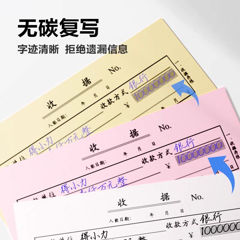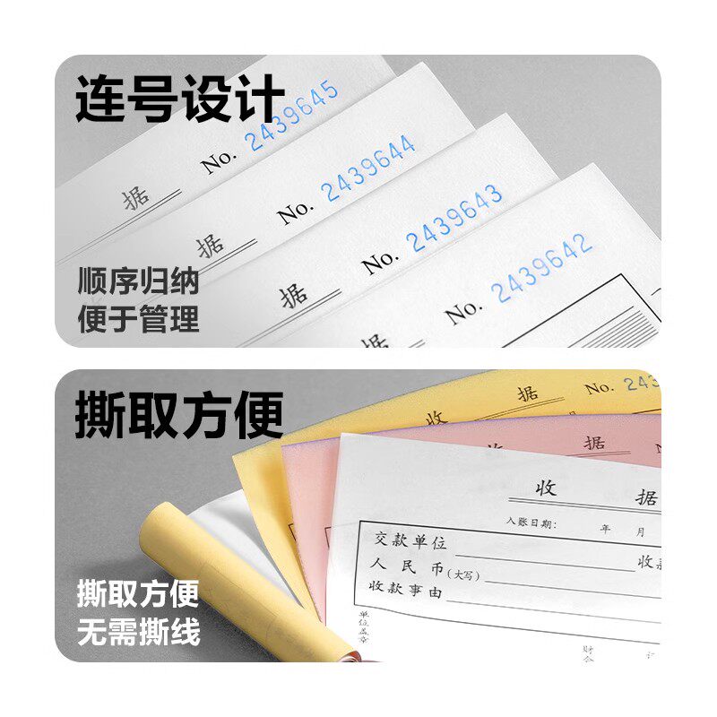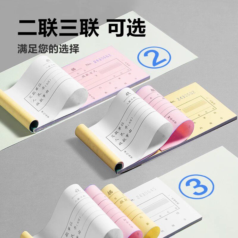 得力收据本无碳复写财务用品23联连两联单据簿账簿收款本 单栏多栏二联三联餐饮财会现金收据条单据锯办公用
