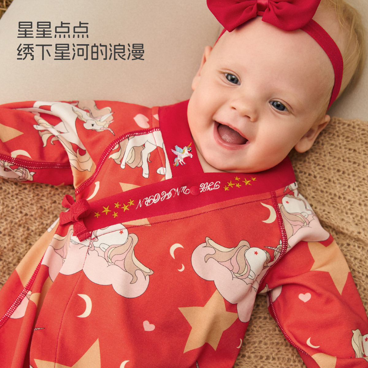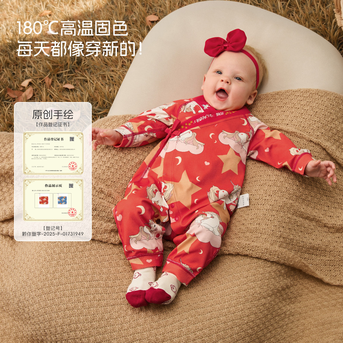 [星耀小马]aqpa新生儿婴儿衣服秋装保暖宝宝连体衣哈衣新年满月服