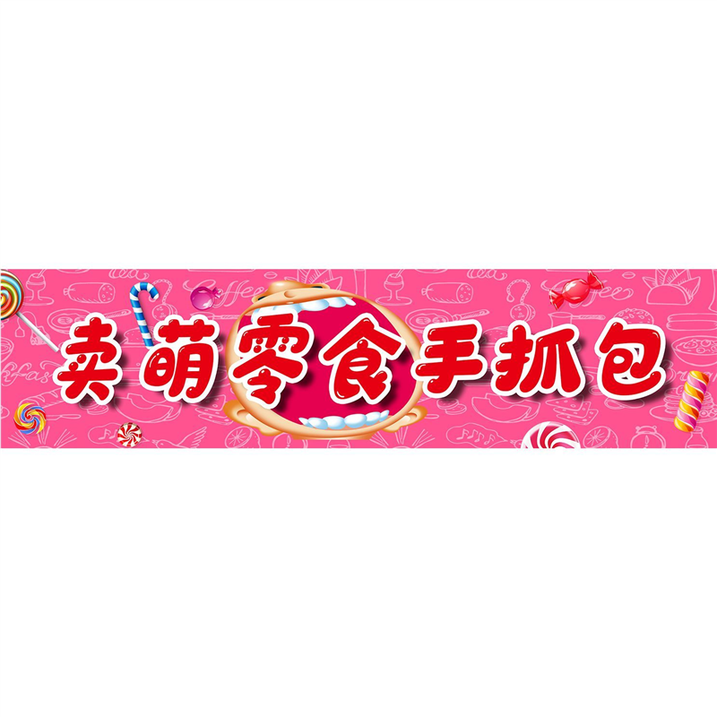 卖萌零食手抓包广告海报贴纸小推车地摊摆摊广告布防水贴画喷绘布