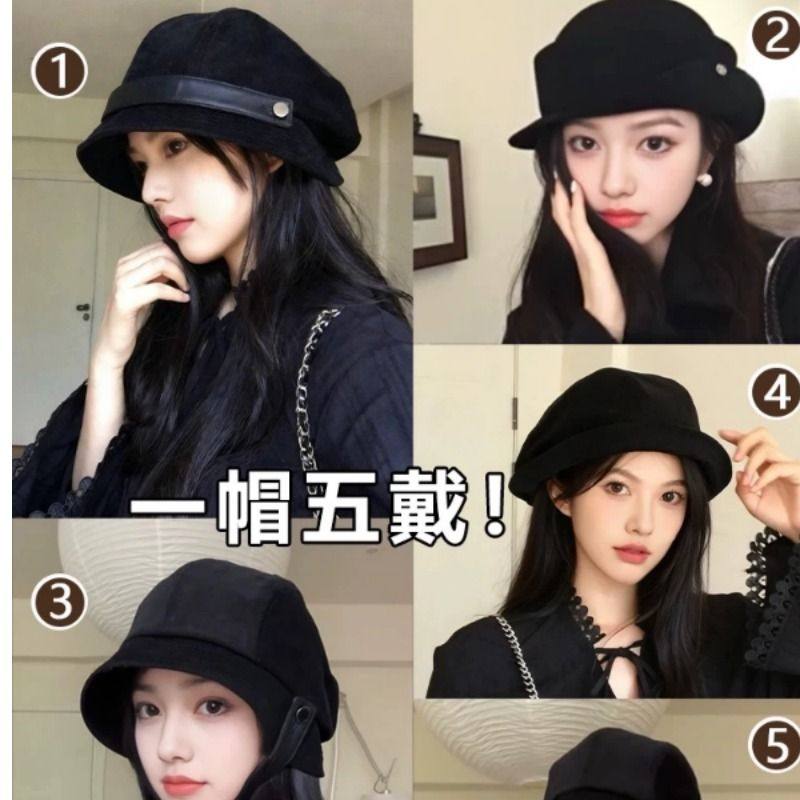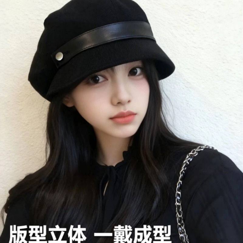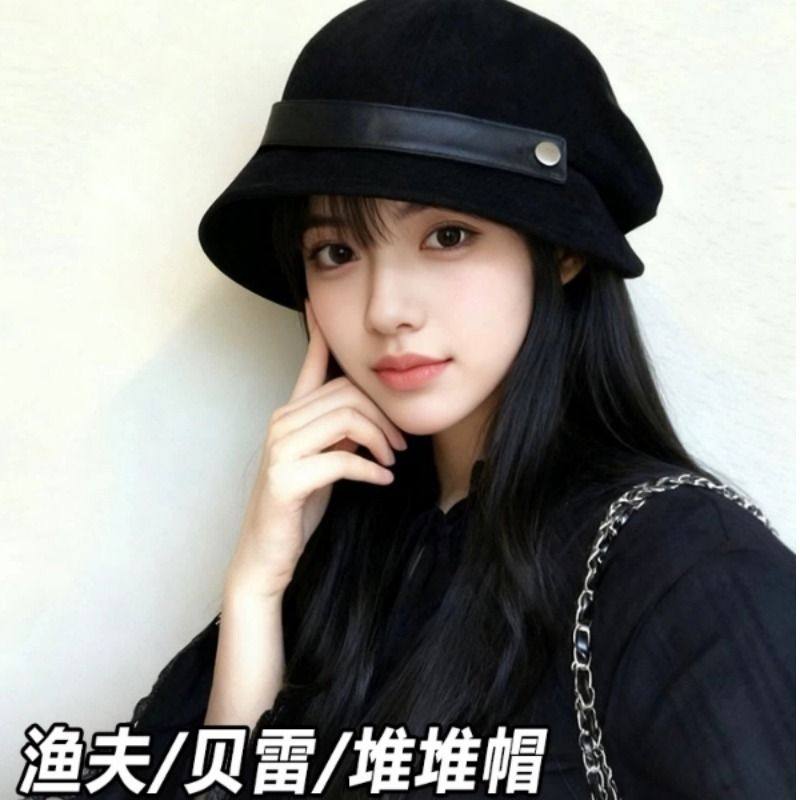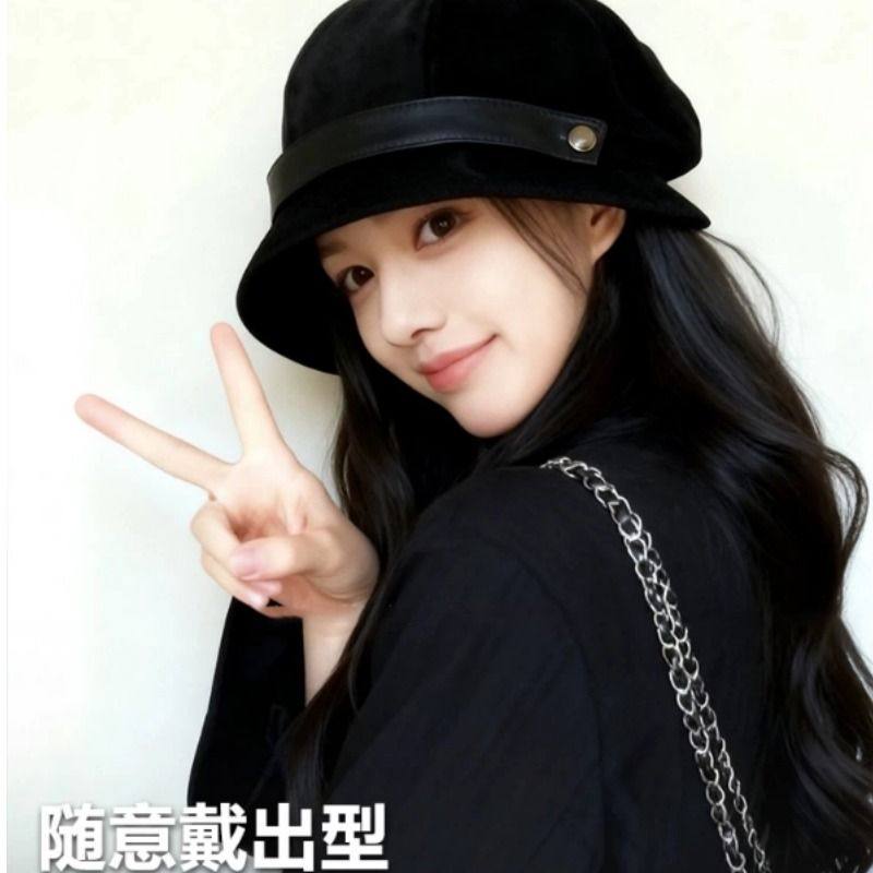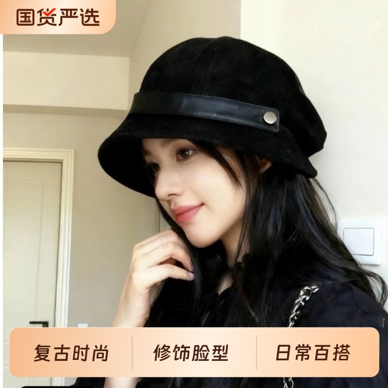高级感灯芯绒渔夫帽女秋冬2025新款大头围帽子方圆脸显脸小贝雷帽
