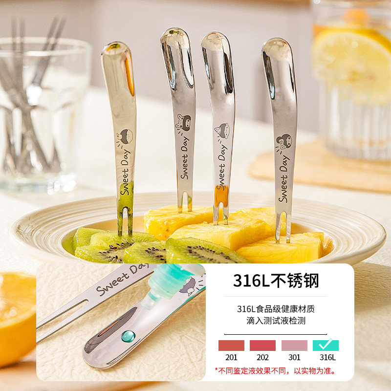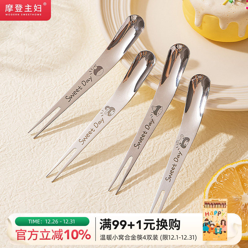 摩登主妇一家三口316L不锈钢水果叉子水果签轻奢高级感甜品叉餐叉