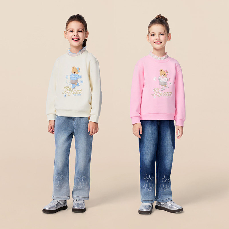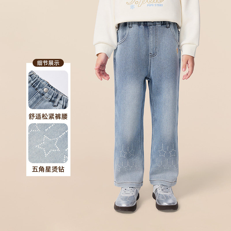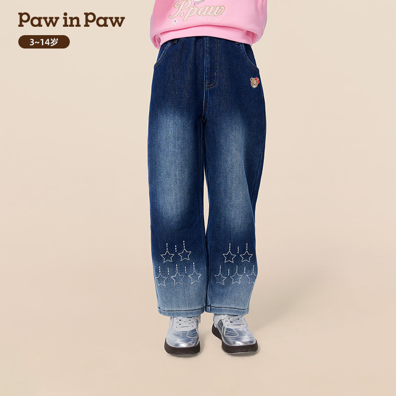 PawinPaw卡通小熊童装25年冬季新款女童加绒直筒牛仔裤时尚百搭
