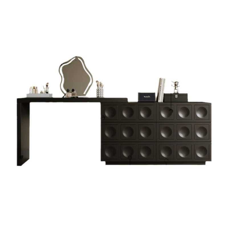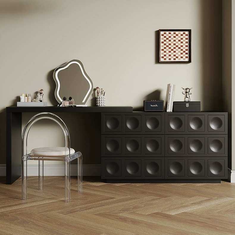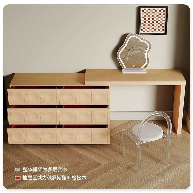 复古梳妆台斗柜一体化妆桌中古风卧室转角伸缩床尾收纳柜实木妆台