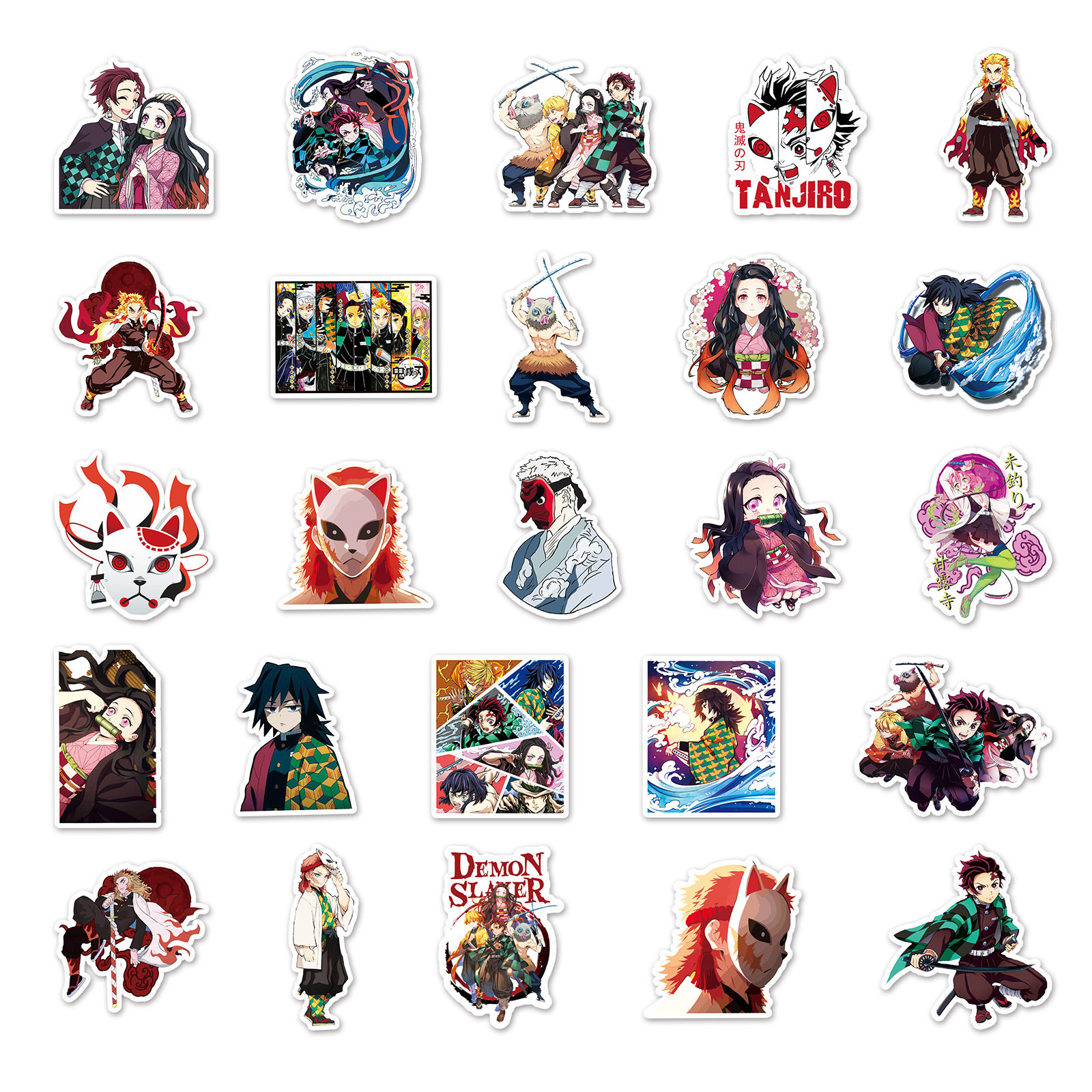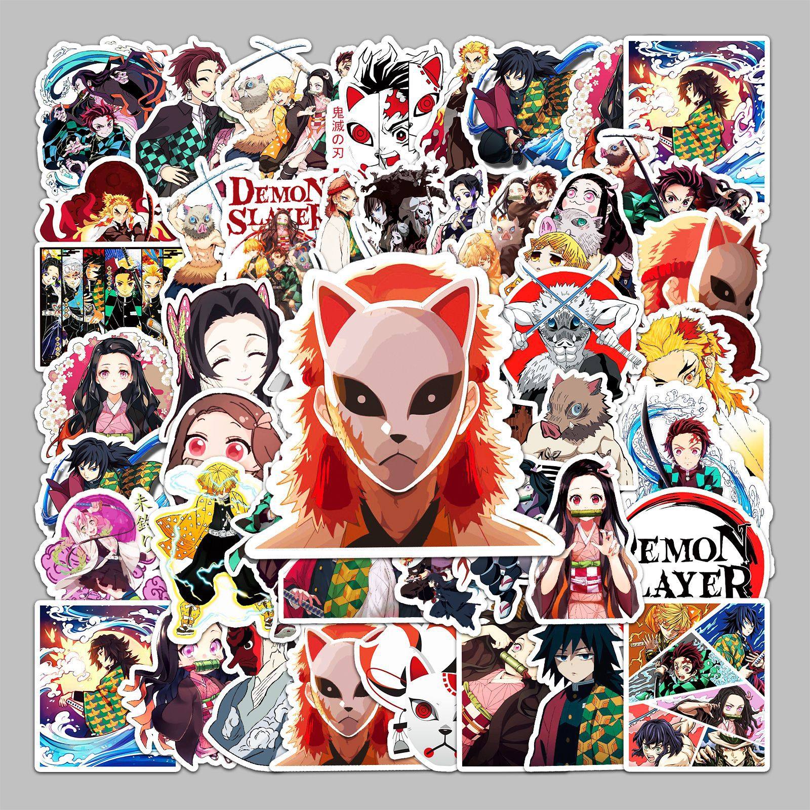 50张鬼灭之刃卡通行李箱贴纸防水涂鸦贴纸滑板车电脑平板水杯装饰