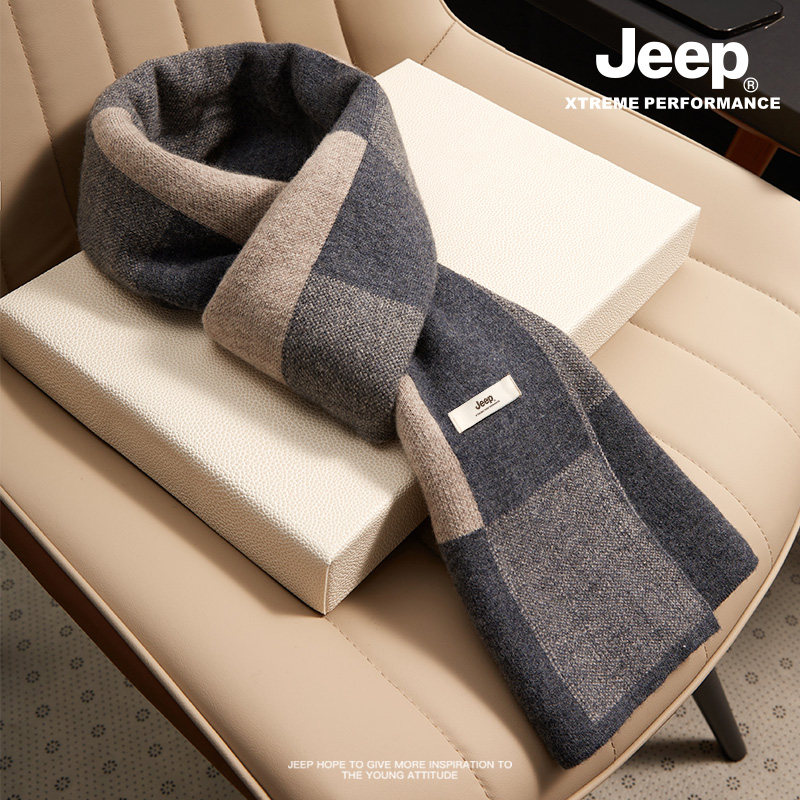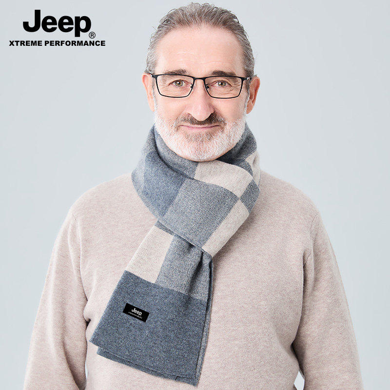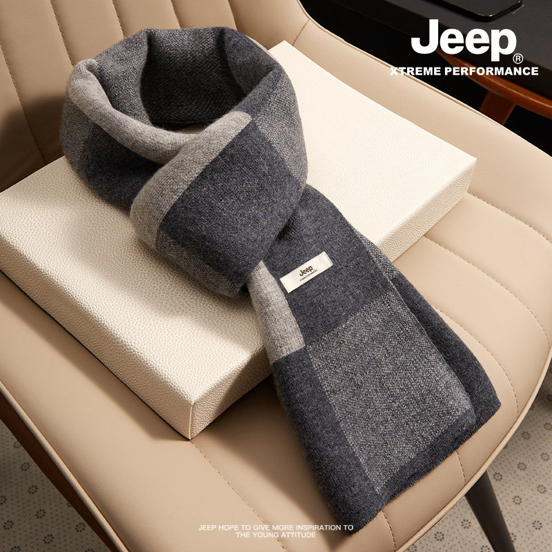 jeep吉普保暖防风围巾男士冬季百搭高档礼盒装围脖送中老年人男冬