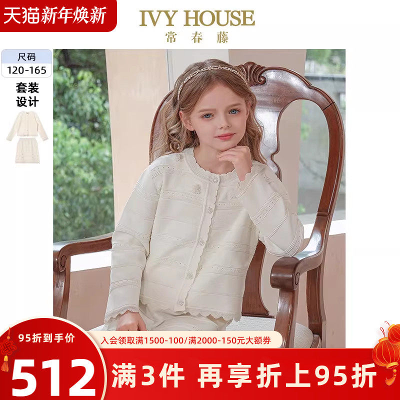IVY HOUSE常春藤儿童装女童2025春季新款 针织提花小香风套装亲子