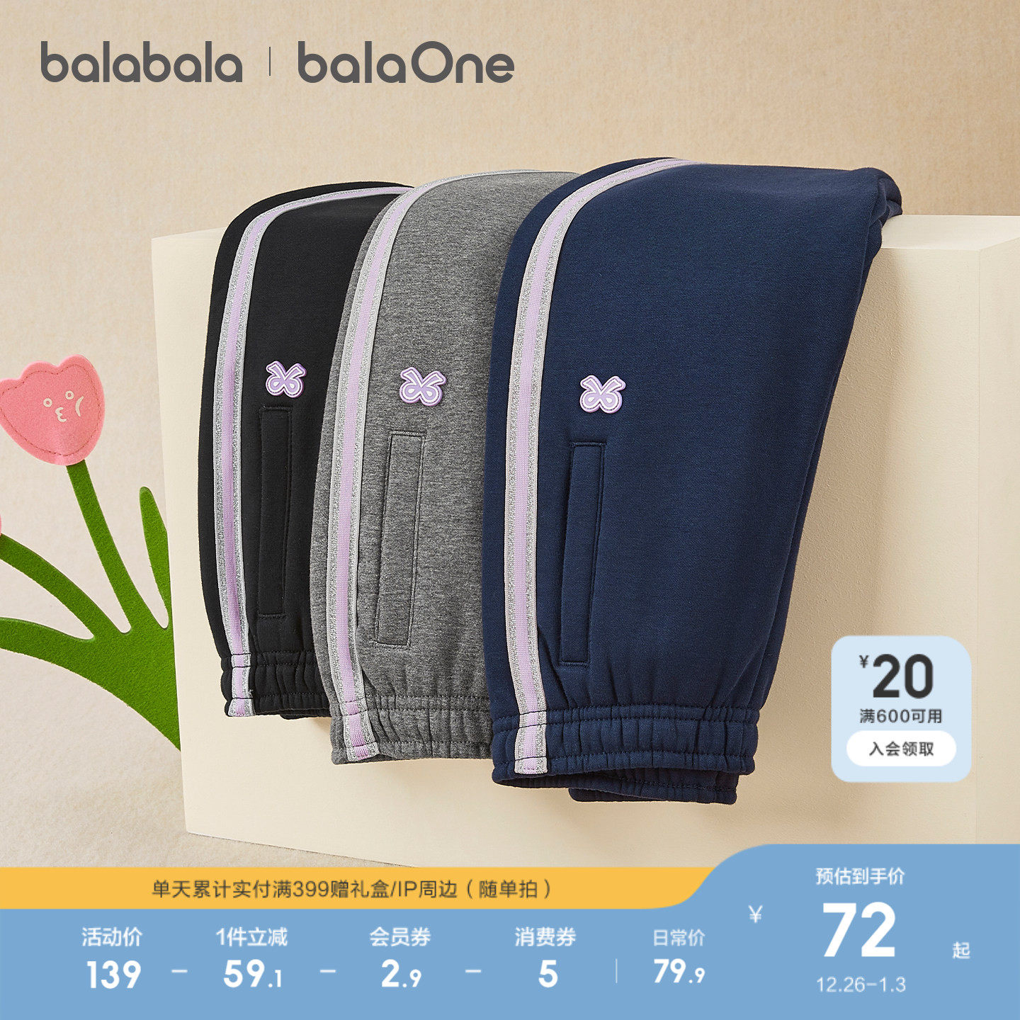 巴拉巴拉童装女童加绒裤子2025秋冬装新款儿童运动长裤加厚保暖潮