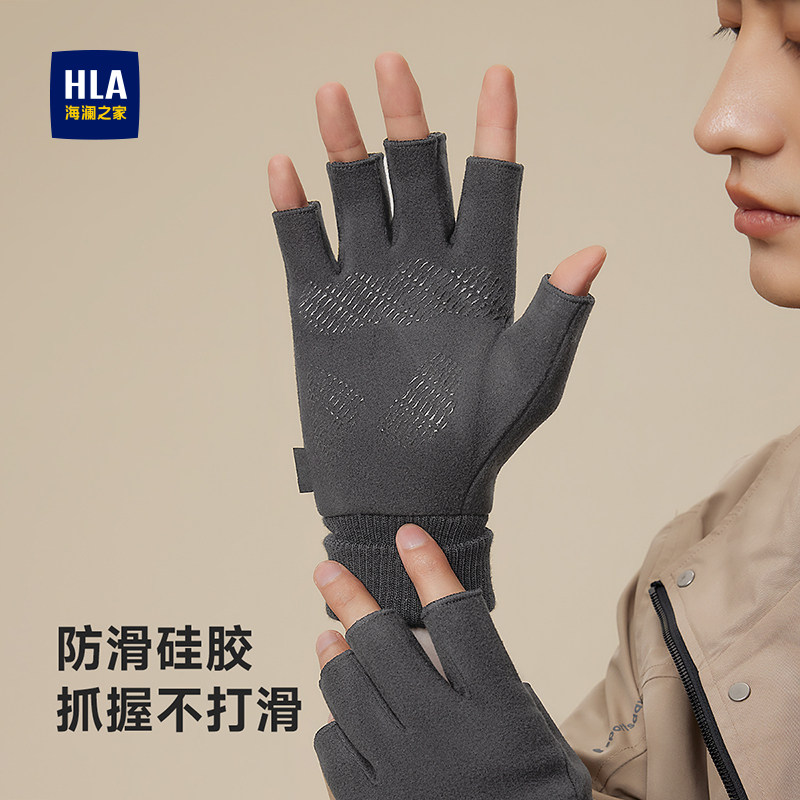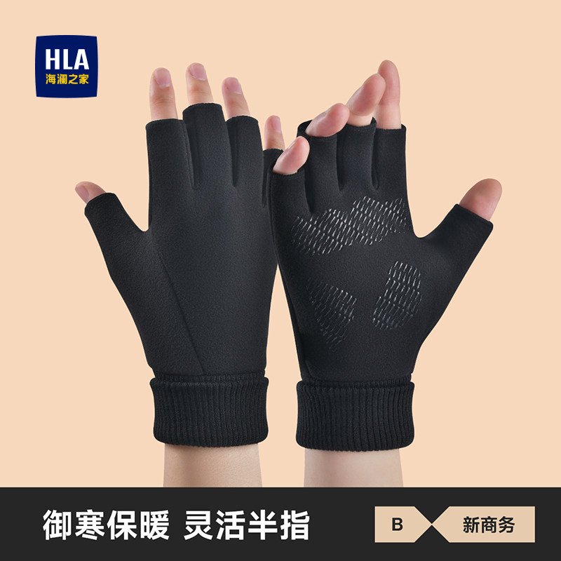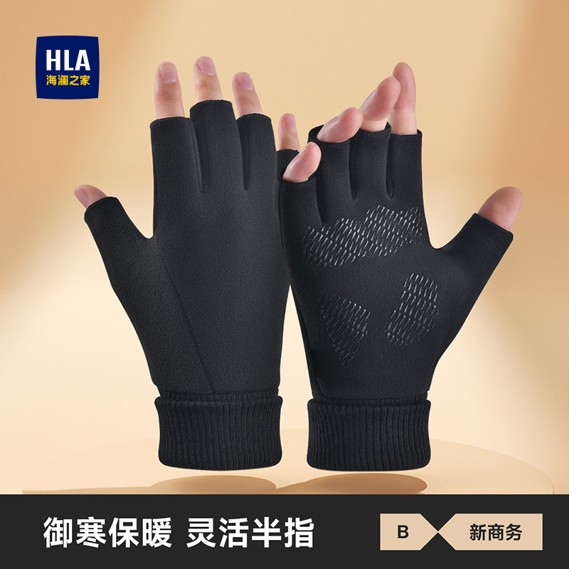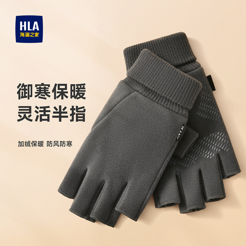 海澜之家手套男士2025新款秋冬保暖户外骑行露五指半指手套钓鱼潮