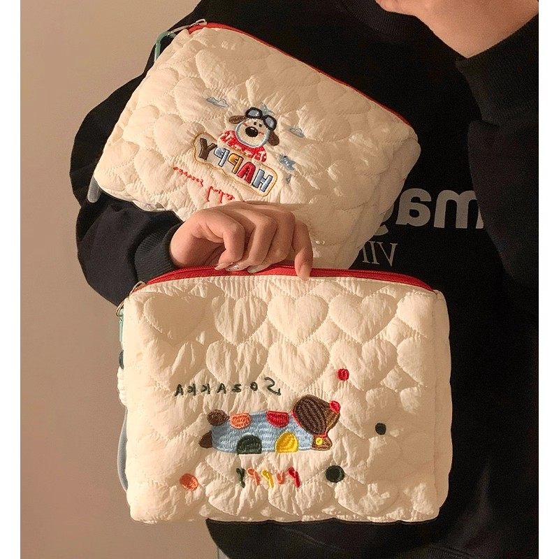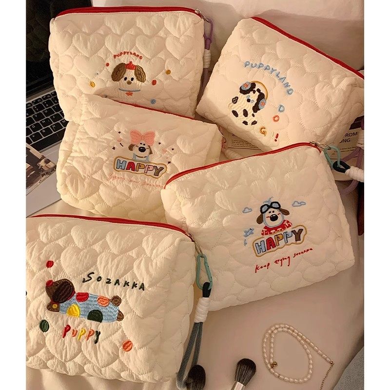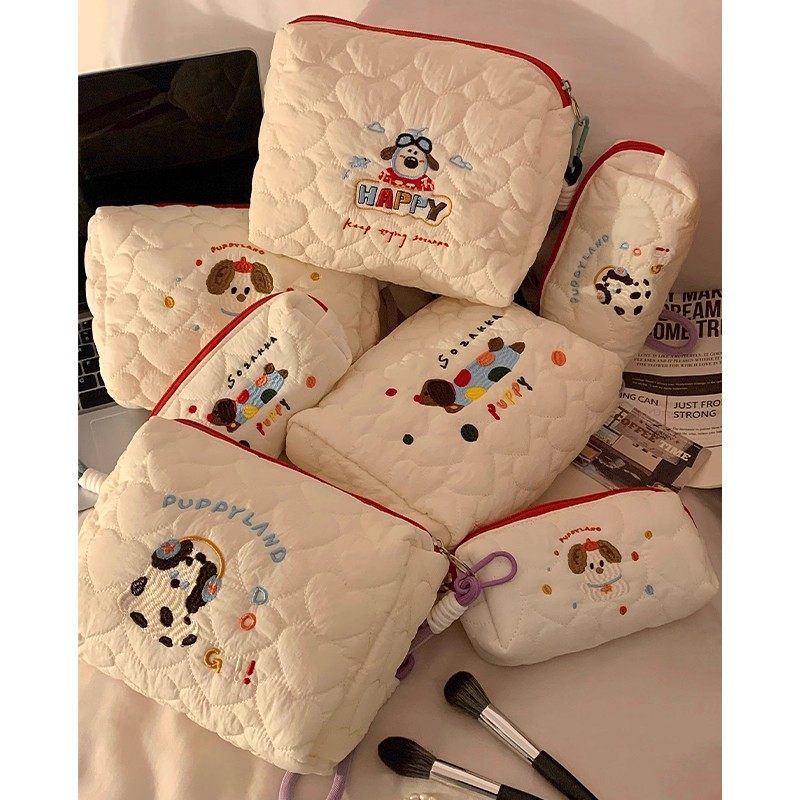 可爱小狗手提化妆包女便携大容量护肤品刷子收纳袋旅行外出洗漱包