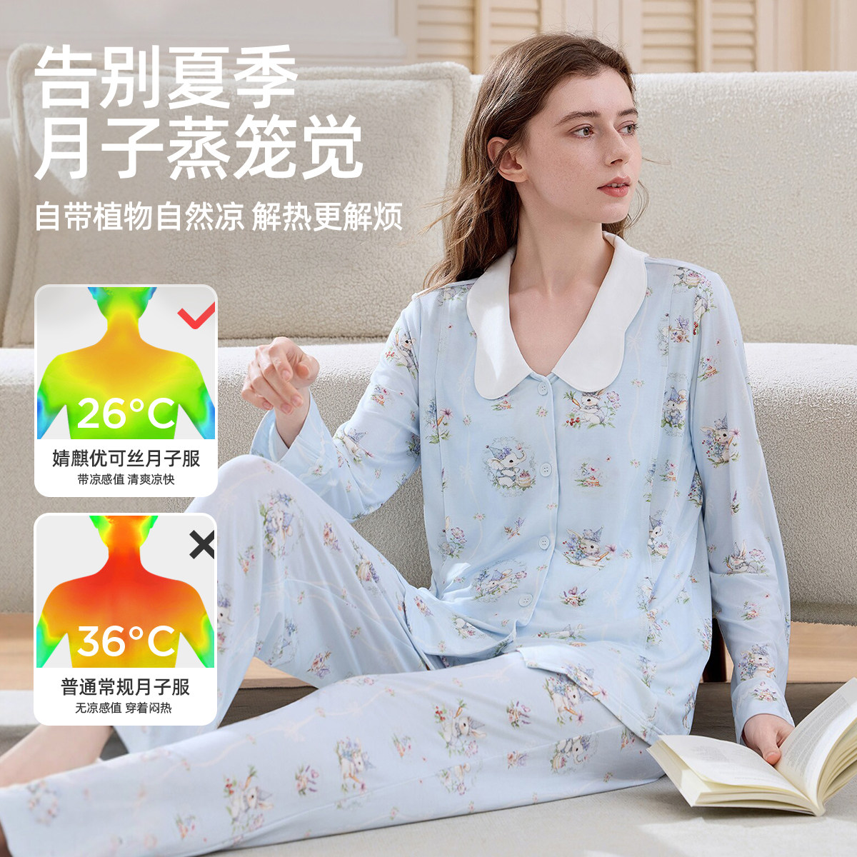 空气棉月子服秋冬纯棉产后夏季薄款全棉吸汗喂奶产妇哺乳孕妇睡衣