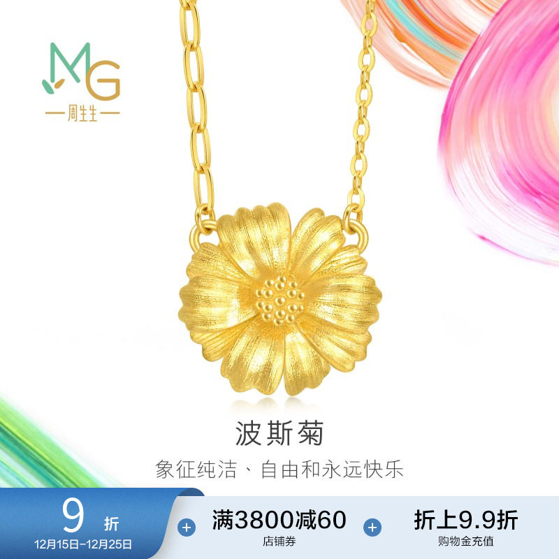 圣诞礼物周生生微糖系列立体波斯菊项链黄金足金套链94533N计价