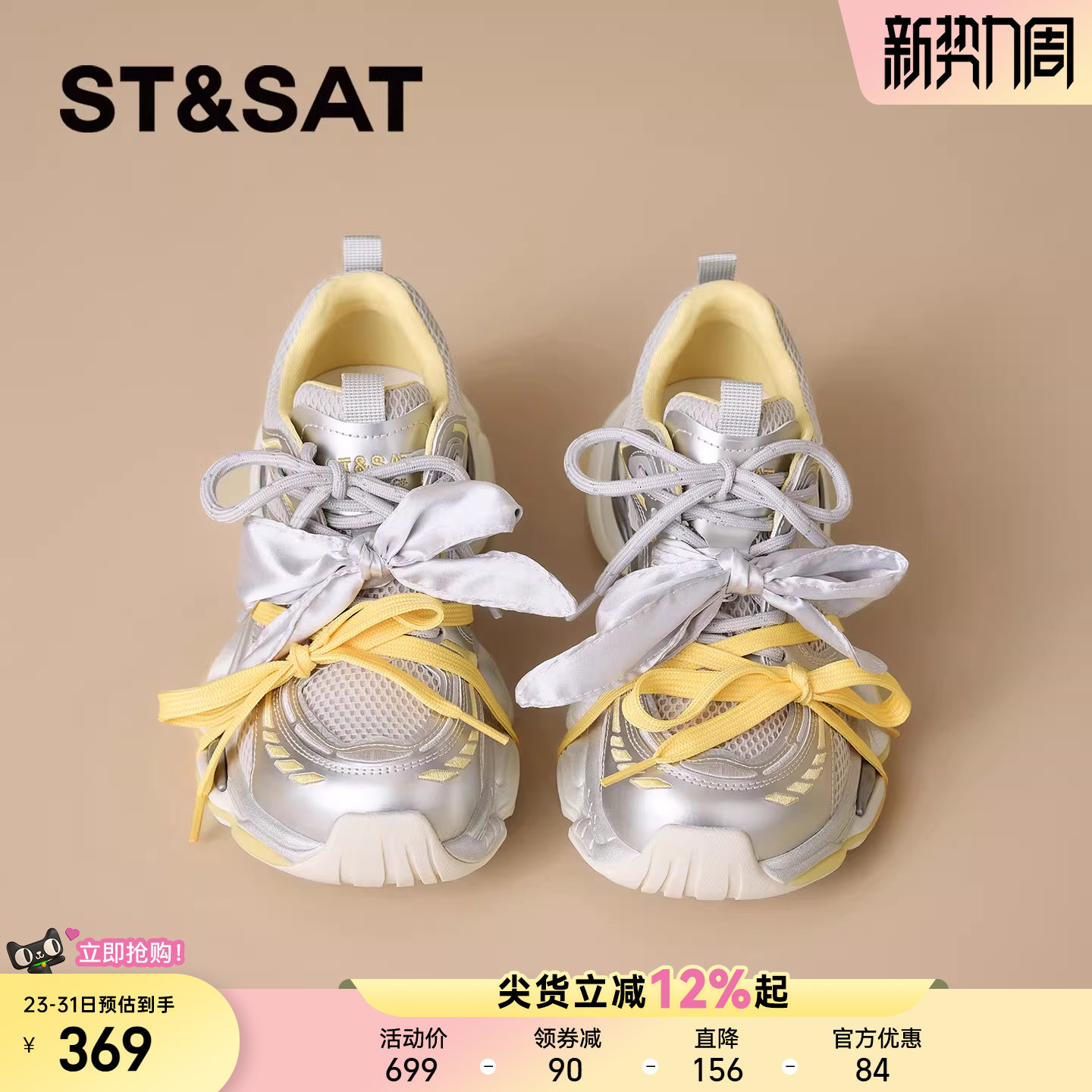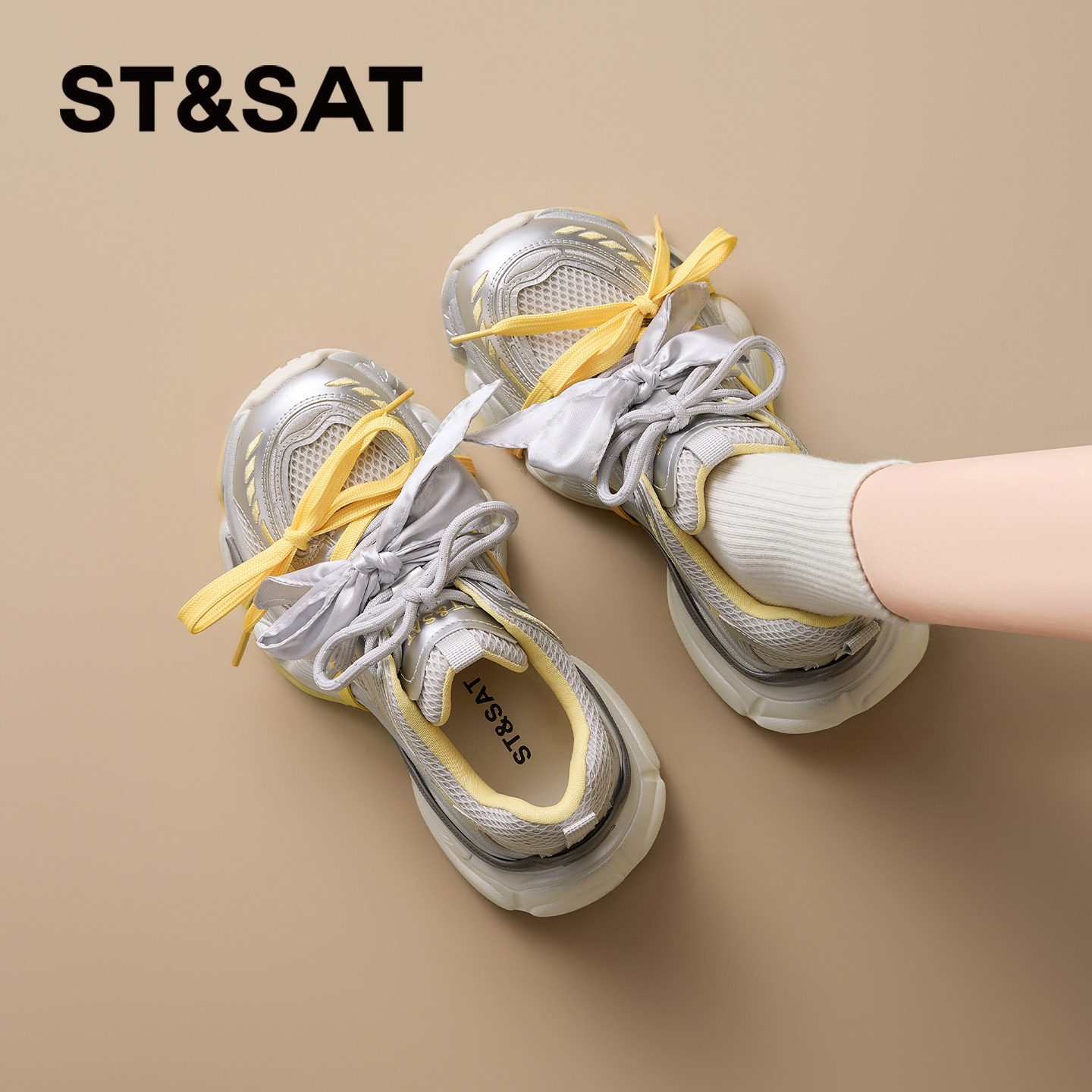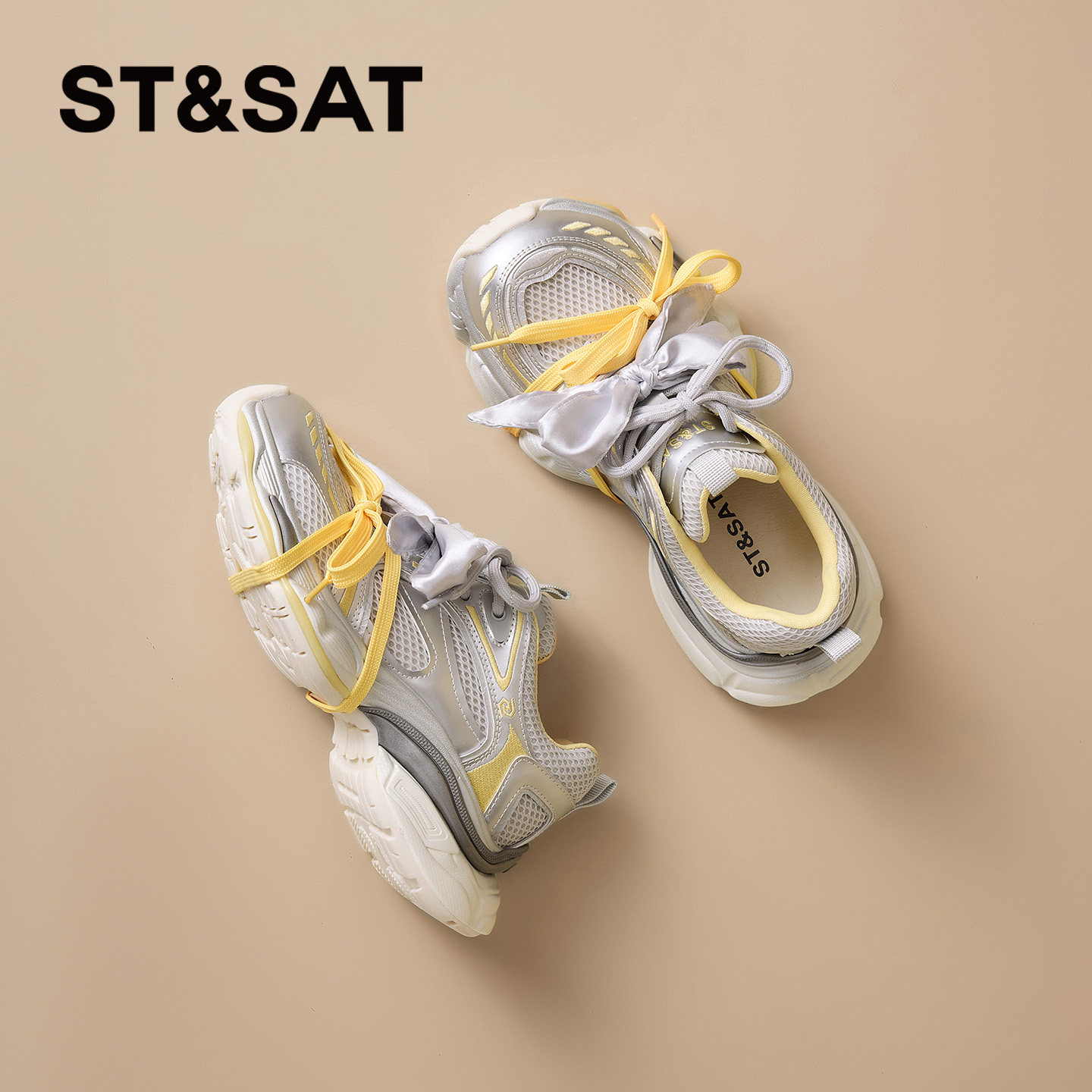 星期六黄色老爹鞋女款2026春季新款网面双鞋带时尚百搭休闲运动鞋