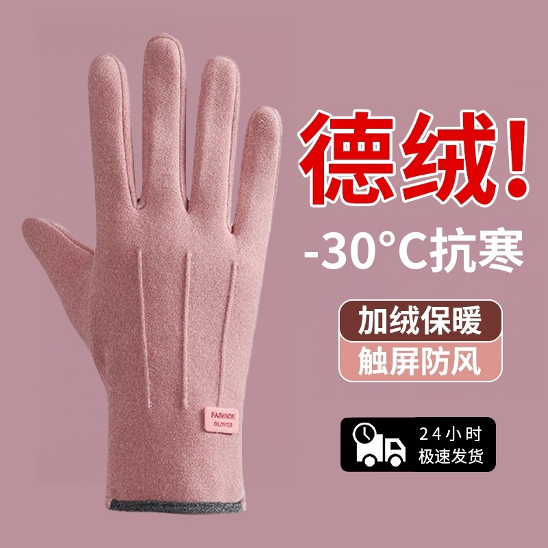 德绒手套女士冬天加绒保暖户外东北开车防寒手套男冬季骑行可触屏