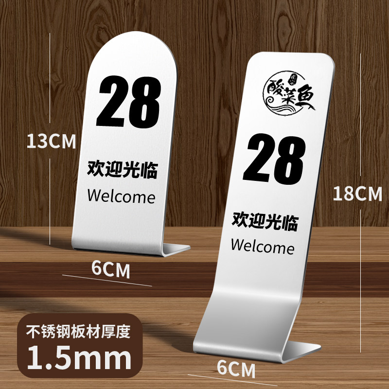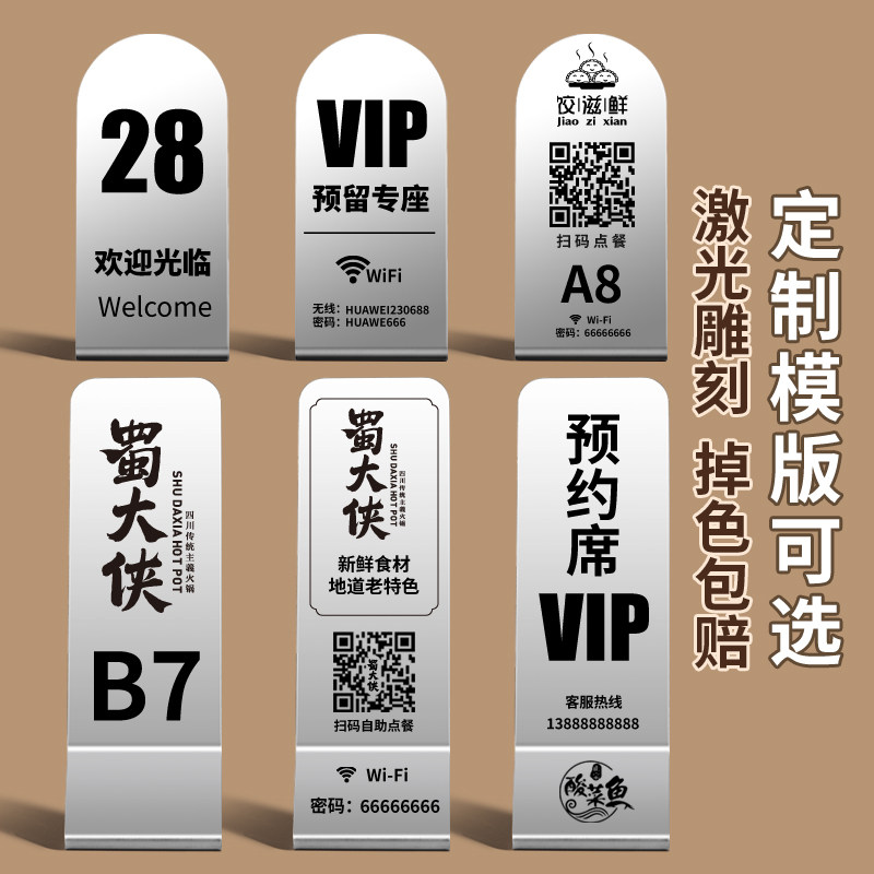 不锈钢餐厅桌号牌面馆排队叫号牌留位预定牌数字立牌可定制二维码激光打印雕刻台牌餐馆多功能啤酒开号码台卡