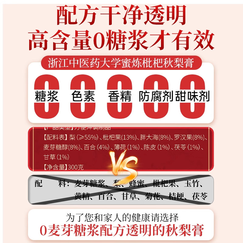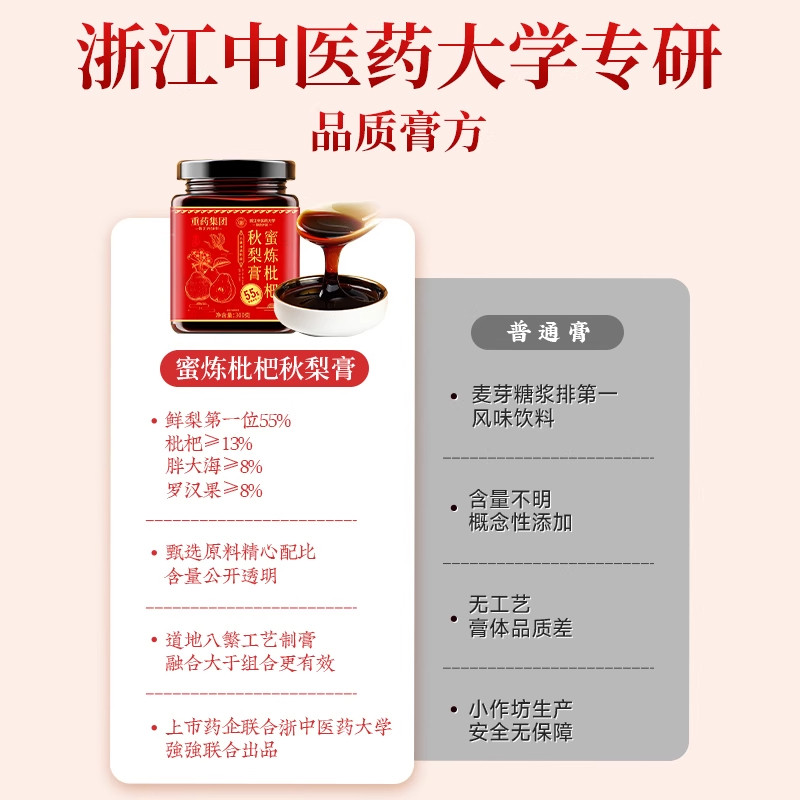 中医药大学联研枇杷秋梨膏儿童成人无添加止润痰肺化咳泡水喝止咳