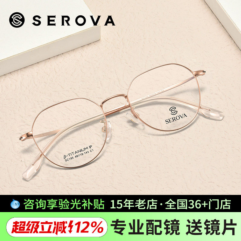 施洛华眼镜框女超轻钛材小框可配高度数金属细框圆框眼镜架SC195