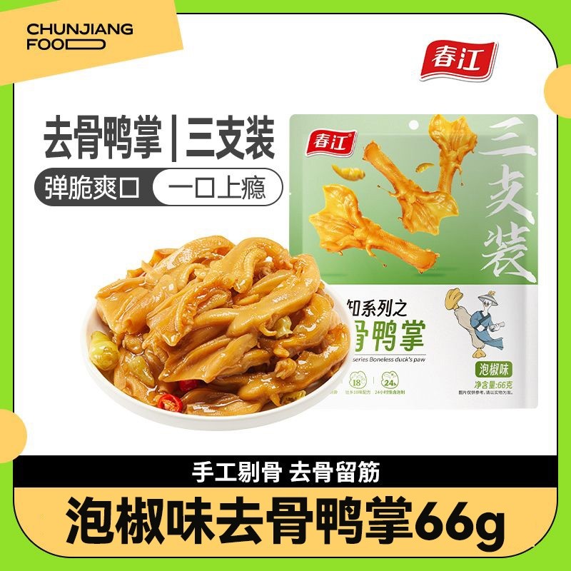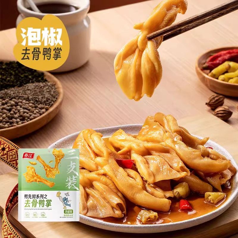 66g泡椒去骨鸭掌网红休闲小吃鸭肉零食宿舍解馋脱骨即食无骨鸭爪