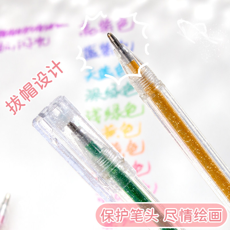 新款闪光啫喱笔高光绘画笔学生手账diy荧光笔套装彩色闪光记号笔
