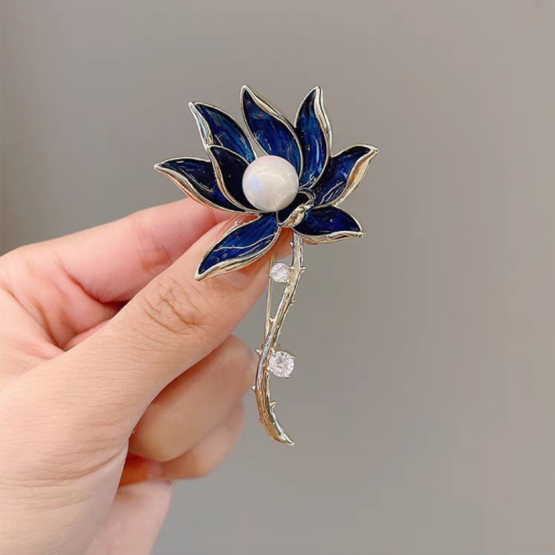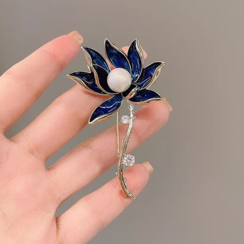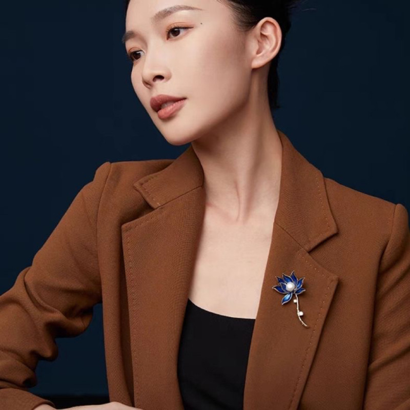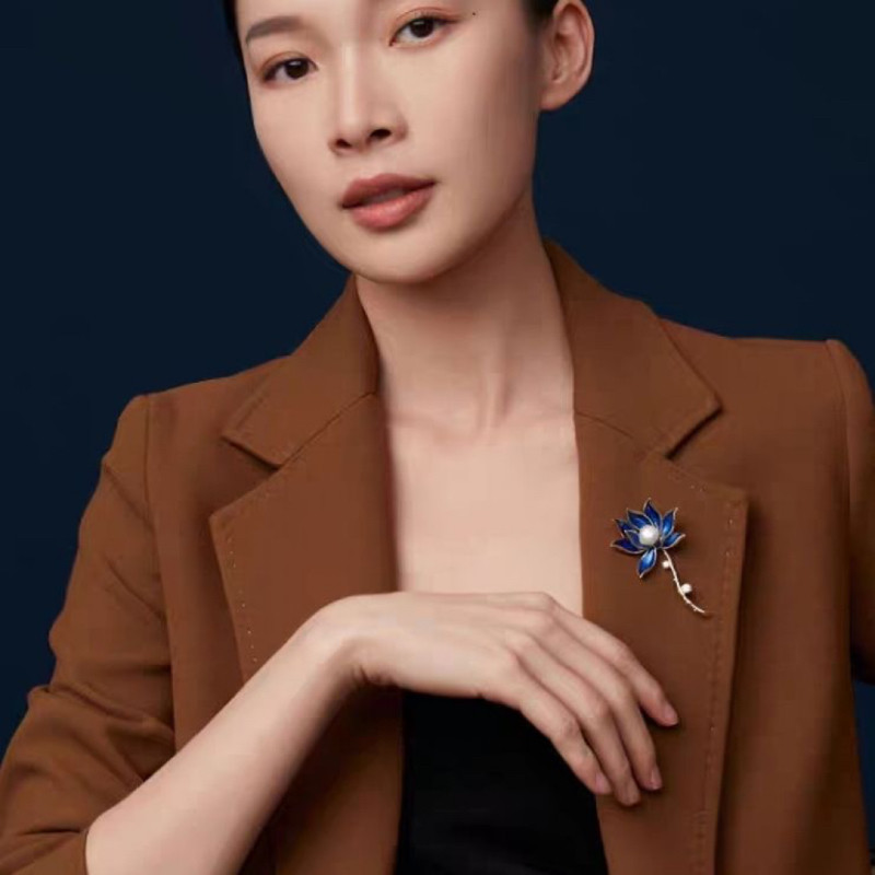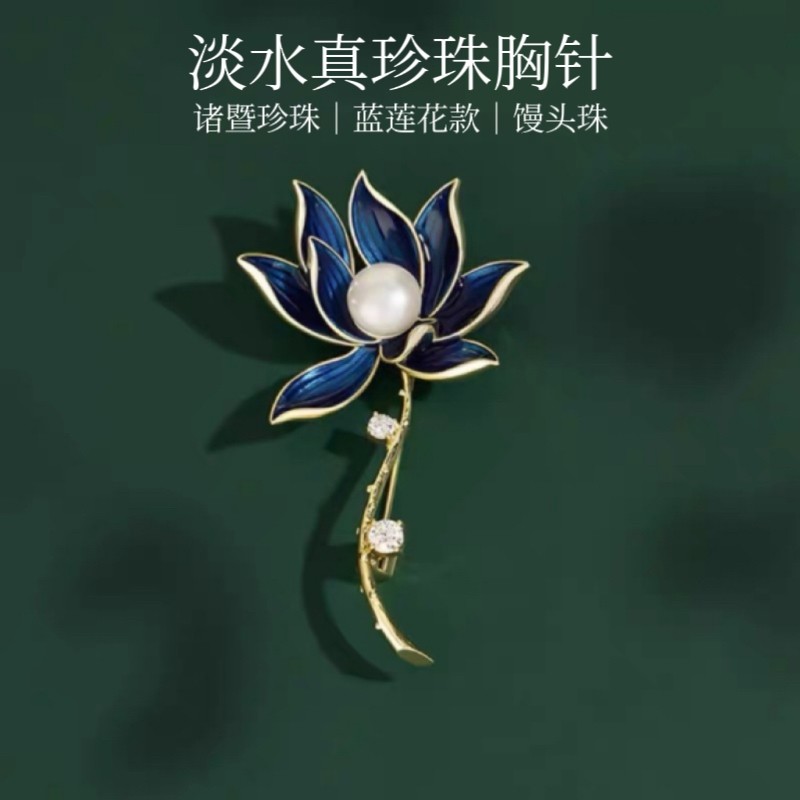 诸暨淡水珍珠蓝莲花胸针简约小香风胸花时尚女毛衣衬衫防走光别针