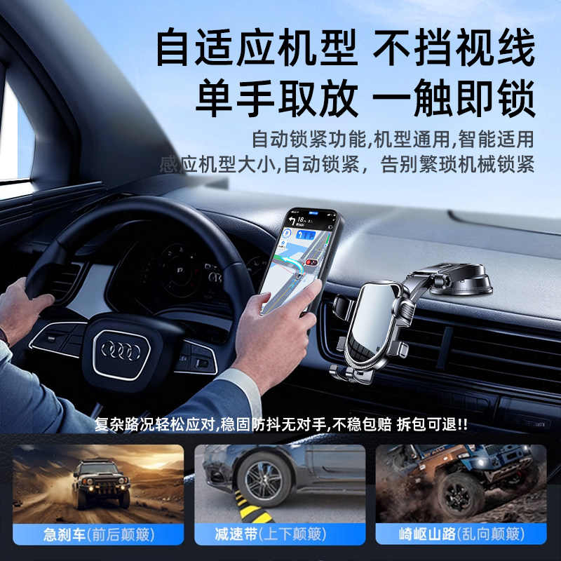 2025新款吸盘式车载手机架卡扣重力支撑自动卡紧汽车导航专用支架
