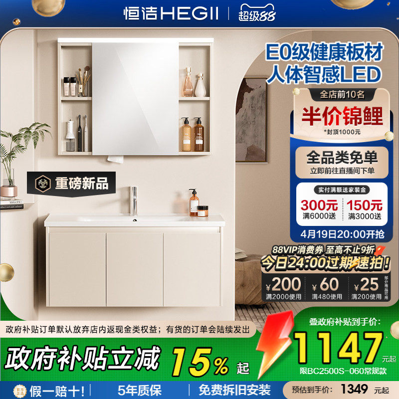 恒洁卫浴蜂窝铝浴室柜组合陶瓷一体盆卫生间洗手盆柜储物洗漱台