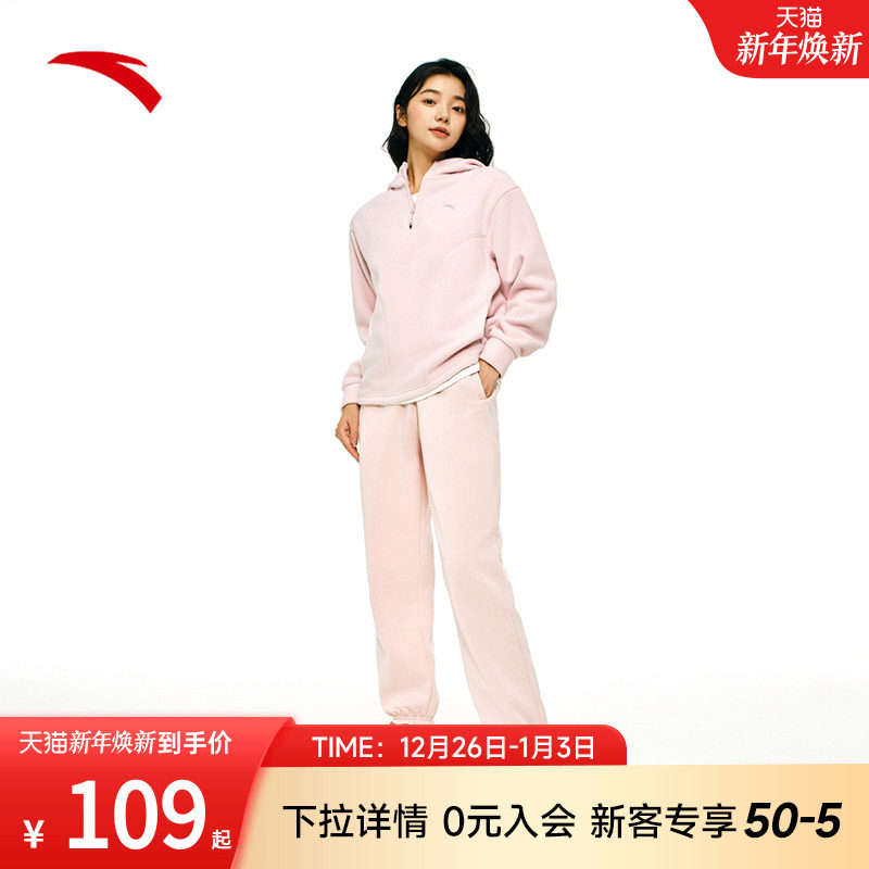 李宁卫裤女秋冬加绒束脚女士宽松休闲裤子女针织百搭毛圈运动长裤
