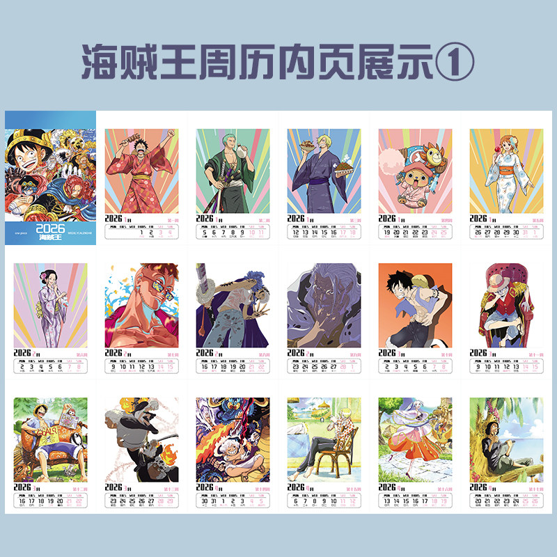 海贼王2026年周历台历路飞娜美索隆学生桌面卡通动漫学生记事日历