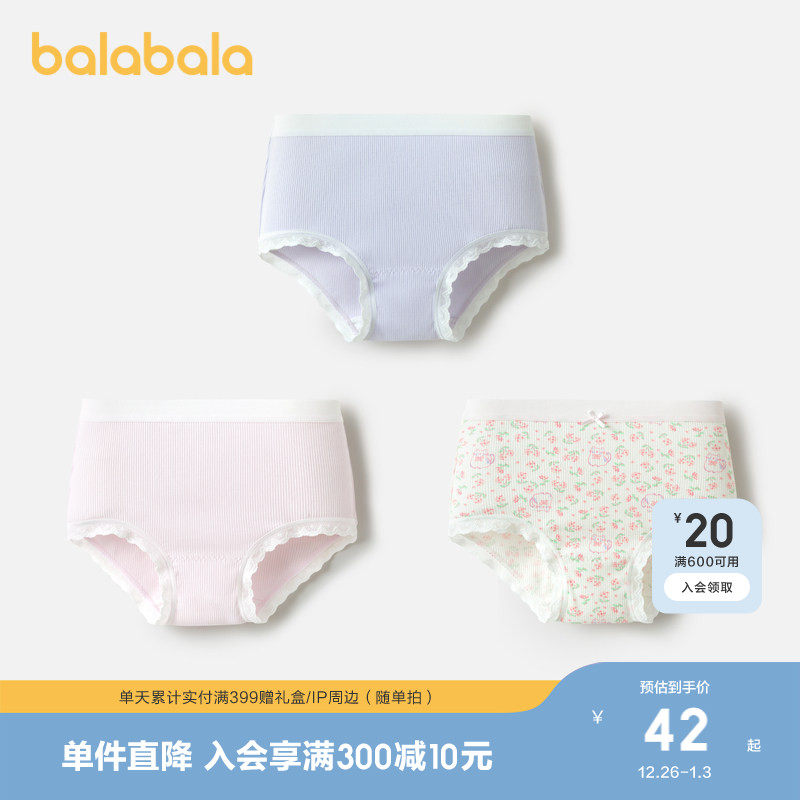 巴拉巴拉女童内裤平角儿童三角短裤小大童宝宝不夹PP抗菌萌三条装
