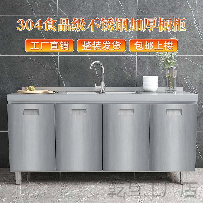 304整体全不锈白钢厨房橱柜简易灶台一体储物收纳碗柜家用小户型