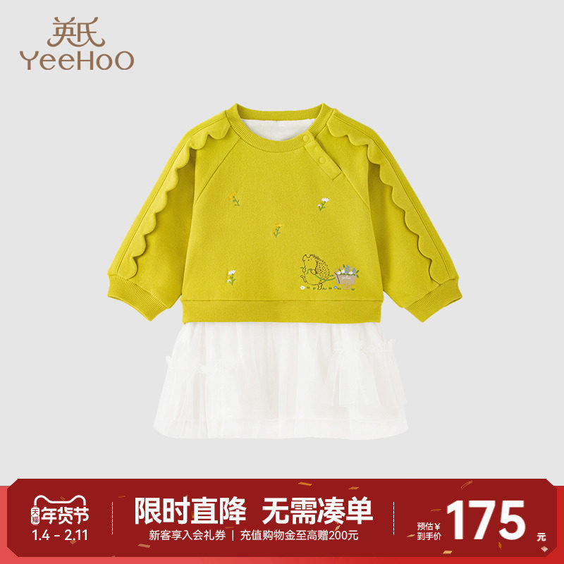 【商场同款】英氏女童连衣裙假两件加绒保暖秋冬可爱裙子新款