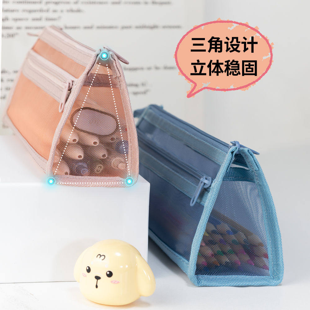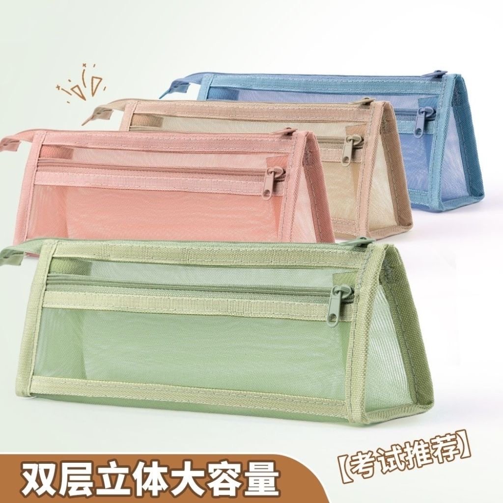 网纱笔袋耐脏双层简约风文具袋ins风学生考试铅笔袋透明初高中生