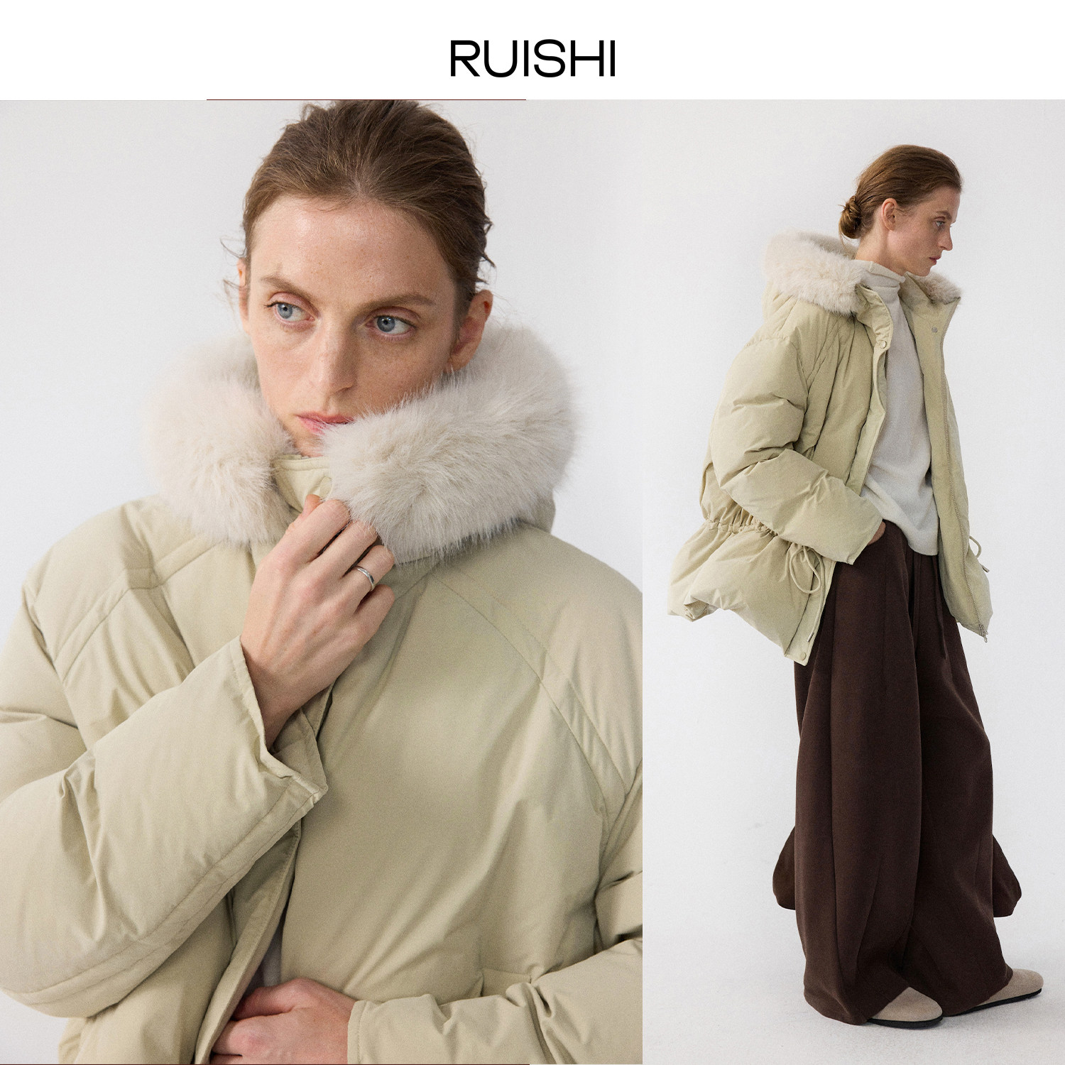 RUISHI芮时“雪境漫游者”可拆卸毛领白鸭绒/鹅绒羽绒服外套女冬