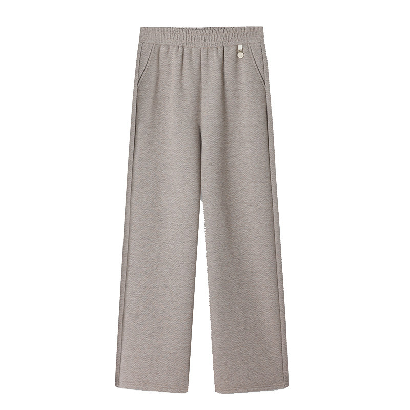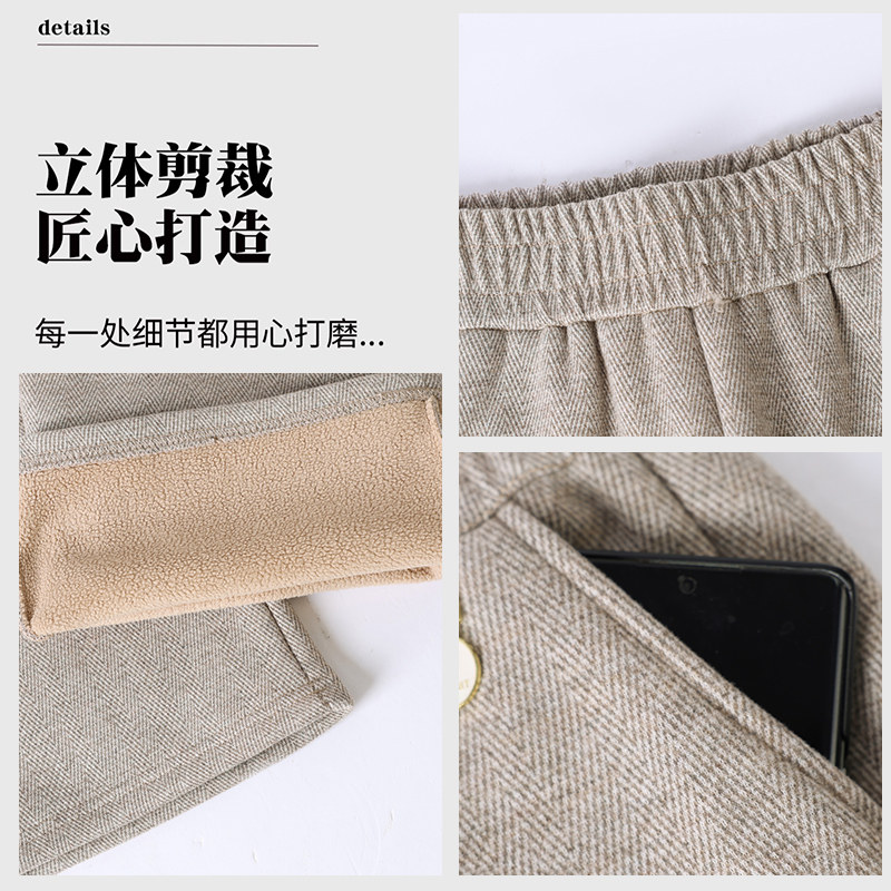 奶奶冬装洋气加绒毛呢直筒裤中老年女春秋妈妈长裤加厚休闲裤黑色