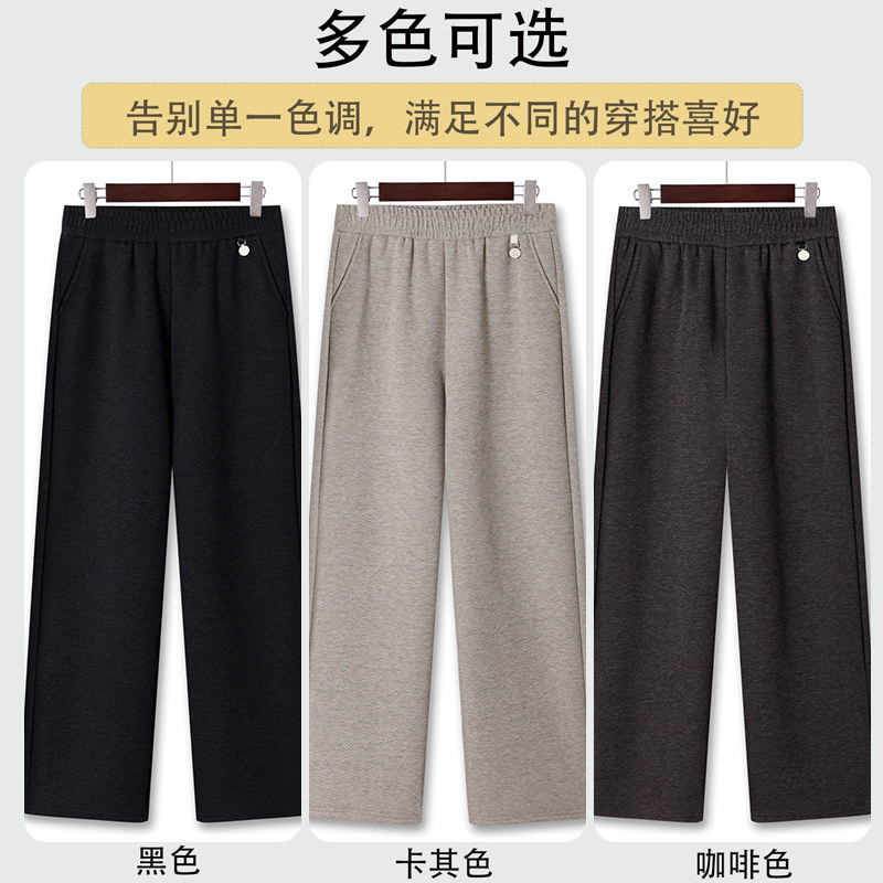 妈妈裤子春秋款松紧高腰弹力中老年女裤宽松大码直筒奶奶加绒长裤